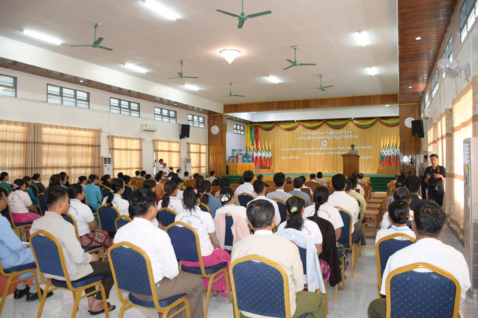 ပဲခူးတိုင်းဒေသကြီး၊ တောင်ငူမြို့၊ ခပေါင်းခန်းမ၌ တောင်ငူခရိုင်အသေးစားစက်မှုလက်မှုလုပ်ငန်းဦးစီးဌာနမှ အသေးစားကုန်ထုတ်လုပ်ငန်းများ ဖန်တီးပေးနိုင်ရေးနှင့် ကျေးလက်နေမိသားစုများ ဝင်ငွေတိုးရေးစီမံကိန်းလုပ်ငန်းသုံးပစ္စည်းများ ပေးအပ်ပွဲအခမ်းအနားကို ယနေ့နံနက်ပိုင်းက ကျင်းပရာ ပဲခူးတိုင်းဒေသကြီးအစိုးရအဖွဲ့ ဝန်ကြီးချူပ်ဦးမျိုးဆွေဝင်းနှင့် တိုင်းဒေသကြီးအစိုးရအဖွဲ့ဝင်များ တက်ရောက်အားပေးသည်။