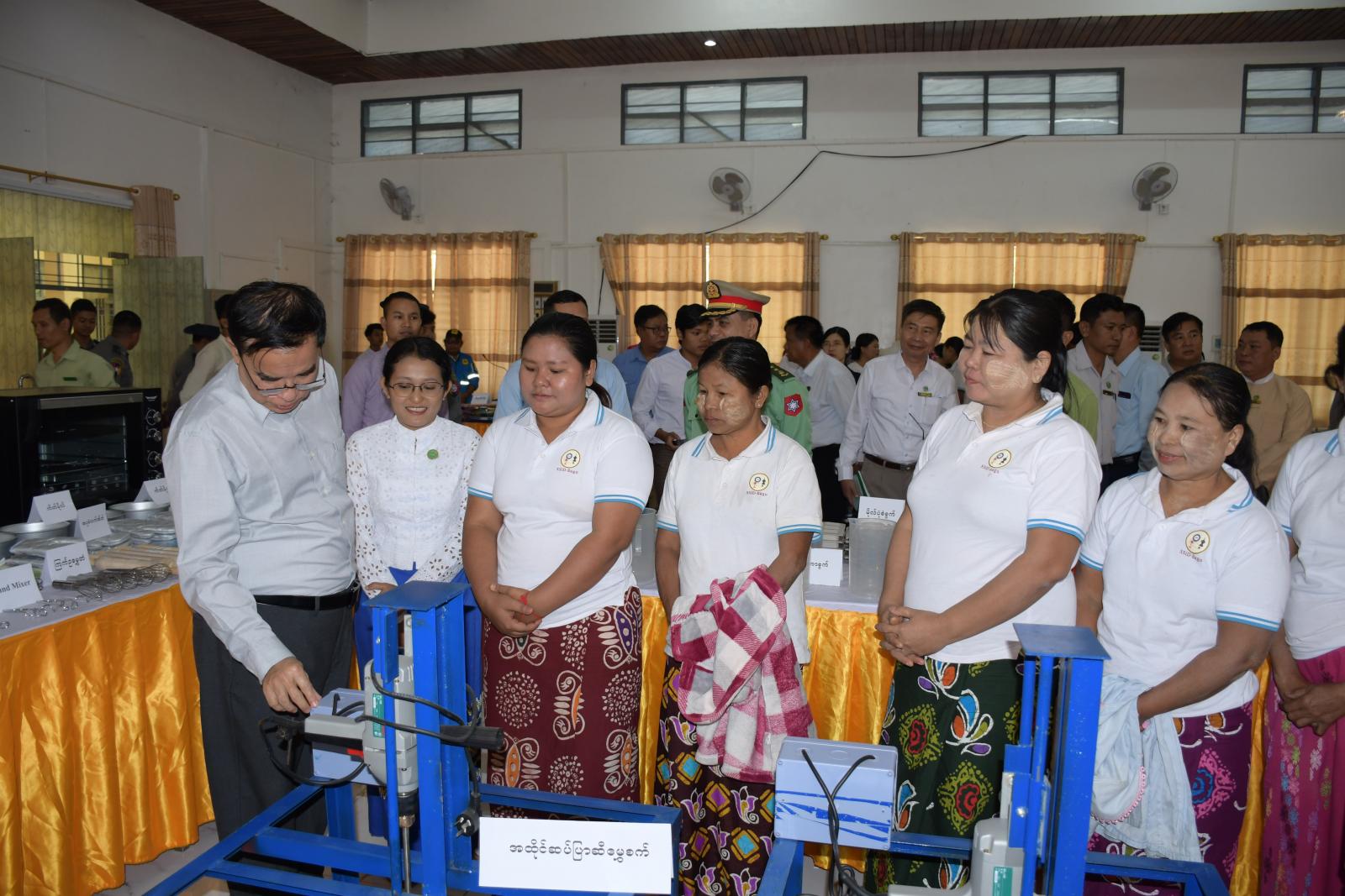 ထို့နောက် ပဲခူးတိုင်းဒေသကြီးအစိုးရအဖွဲ့၊ ဝန်ကြီးချုပ် ဦးမျိုးဆွေဝင်းနှင့် တိုင်းဒေသကြီးအစိုးရအဖွဲ့ဝင်များသည် သင်တန်းဆင်းသတ်မှတ်ချက်နှင့်အညီ ရွေးချယ်ထားသည့် သင်တန်းသူ(၁၅)ဦးအား လုပ်ငန်းသုံးပစ္စည်းများပေးအပ်ပြီး လုပ်ငန်းသုံးပစ္စည်းများကို လှည့်လည်ကြည့်ရှုကာ တွေ့ဆုံအားပေးစကားပြောကြားခဲ့ကြောင်း သတင်းရရှိသည်။