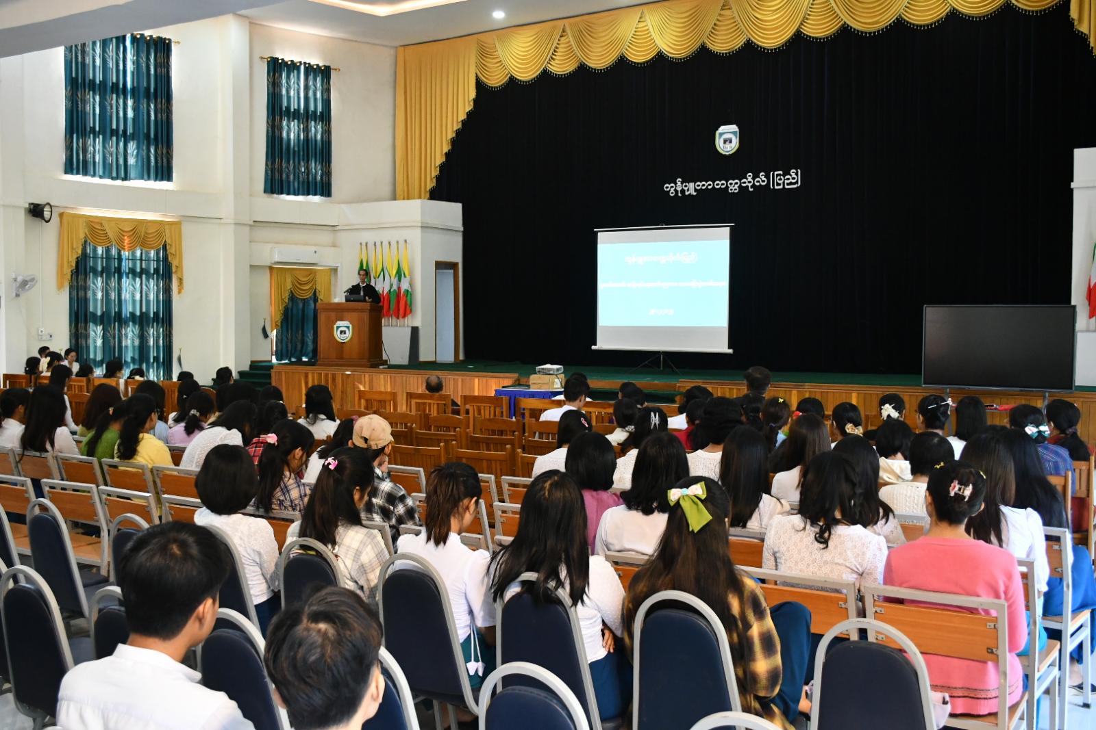 ကွန်ပျူတာတက္ကသိုလ်(ပြည်)၌ ယနေ့နံနက်ပိုင်းက မူးယစ်ဆေးဝါးဆန့်ကျင်ရေးအသိပညာပေး ဟောပြောပွဲကျင်းပရာ ဦးစွာ ယင်းတက္ကသိုလ်မှ ဒုတိယပါမောက္ခချုပ်ဒေါက်တာယုဇနက ဟောပြောပွဲနှင့်ပတ်သက်၍ ကျောင်းသား၊ ကျောင်းသူများအား အမှာစကားပြောကြားသည်။