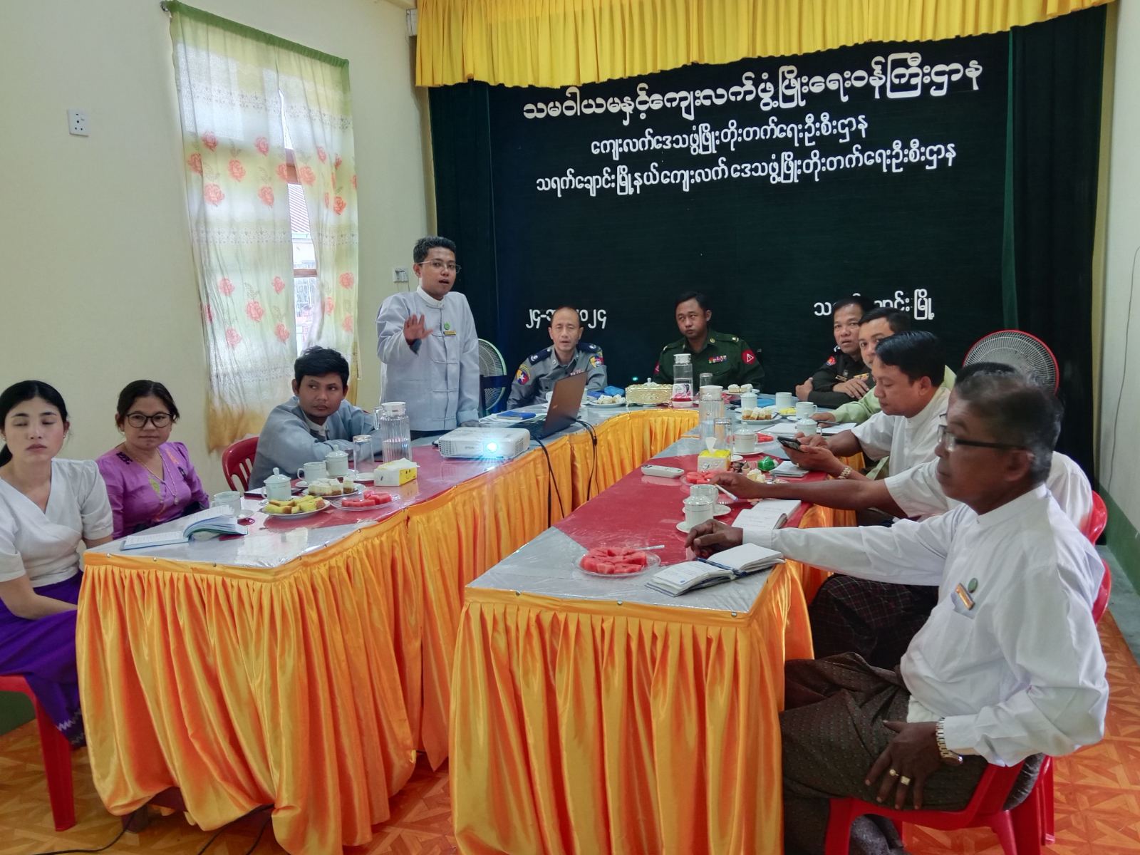 ဆောင်ရွက်ခဲ့မှုအခြေအနေ၊ ၂၀၁၄-၂၀၁၅ခု ဘဏ္ဍာရေးနှစ်မှ ၂၀၂၄-၂၀၂၅ခု ဘဏ္ဍာရေးနှစ်အထိ မြစိမ်းရောင်စီမံကိန်းဆောင်ရွက်ထားရှိမှုအခြေအနေ၊ မြစိမ်းရောင်စီမံကိန်းဆောင်ရွက်ခဲ့သည့် မှတ်တမ်းဓာတ်ပုံများ၊ ကျေးရွာမတည်ရန်ပုံငွေစီမံကိန်း (VRFP) အကောင်အထည် ဖော်ဆောင်ရွက်မှုအခြေအနေ၊ မြစိမ်းရောင်ကျေးရွာများသက်တမ်းတိုးမြှင့်ခွင့် တင်ပြထားမှုအခြေအနေ၊ သက်တမ်းတိုးတင်ပြထားသည့် ကျေးရွာများ၏ မြေပြင်အခြေအနေနှင့်ယာယီစီမံကိန်းရပ်ဆိုင်းရန် အဆိုပြုကျေးရွာများအခြေအနေတို့ကို မြို့နယ်စီမံအုပ်ချုပ်ရေးအဖွဲ့ဝင်များနှင့် ကော်မတီဝင်များအား (PowePoint) ဖြင့် ရှင်းလင်းဆွေးနွေးခဲ့သည်။