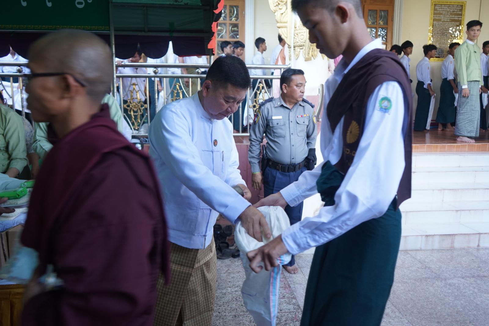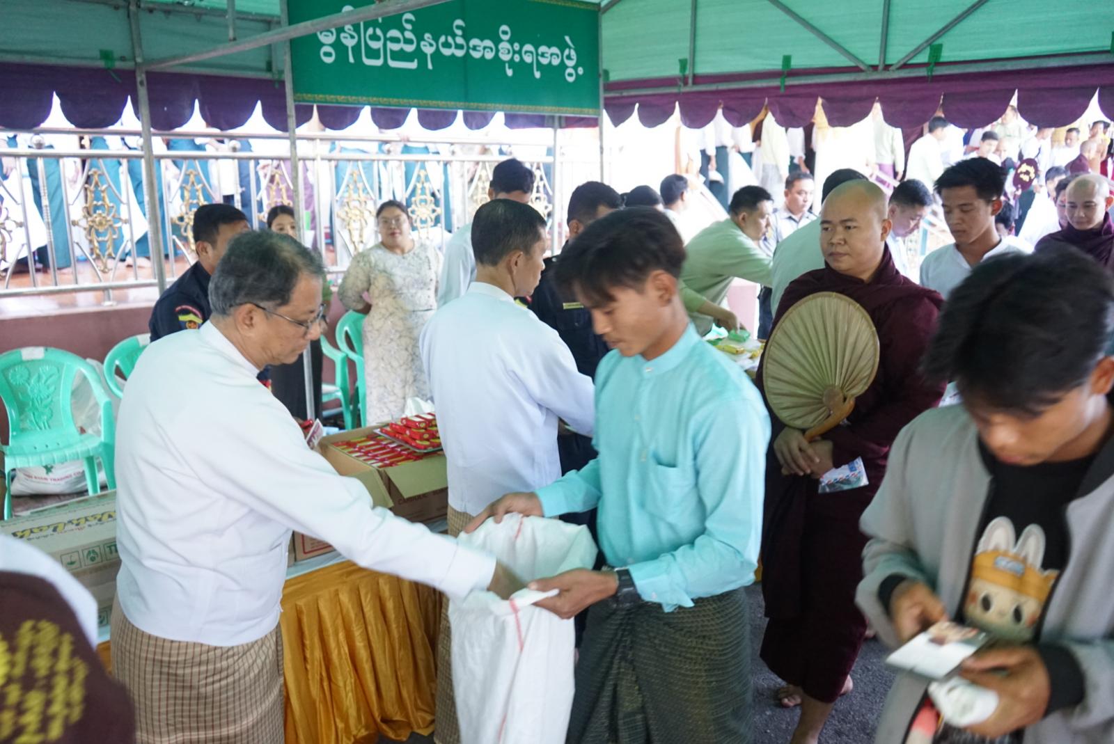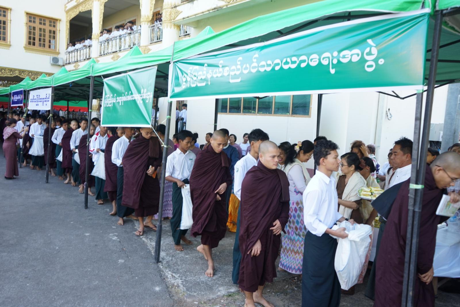 ယင်းနောက် ပြည်နယ်ဝန်ကြီးချုပ်၊ ပြည်နယ်ဝန်ကြီးများ၊ ဌာနဆိုင်ရာများနှင့် အလှူရှင်များက ပင့်သံဃာဆရာတော်ကြီး (၁၀) ပါး၊ စာအောင်သံဃာတော် (၉၉၂) ပါး၊ စာအောင်သီလရှင် (၆၇) ပါး၊ စုစုပေါင်း (၁၀၅၉) ပါးတို့အား ဆွမ်းဆန်စိမ်းများ လောင်းလှူခဲ့ကြကြောင်း သိရှိရသည်။