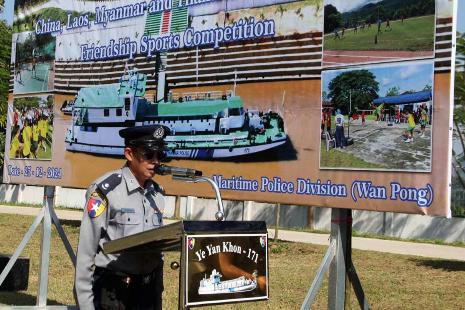 ရှမ်းပြည်နယ်(အရှေ့ပိုင်း)၊ တာချီလိတ်မြို့၌ မြန်မာ-တရုတ်-လာအို-ထိုင်းလေးနိုင်ငံ ရေကြောင်းရဲတပ်ဖွဲ့ဝင်များ၏ ချစ်ကြည်ရေးအားကစားပြိုင်ပွဲကို ယမန်နေ့ နေ့လည်ပိုင်းက အားကစားနည်း(၄)မျိုးဖြင့် မိုင်းဖုန်း(က)ကျေးရွာအုပ်စု၊ ရေကြောင်းရဲတပ်ဖွဲ့ခွဲ(ဝမ်ပုံ) အားကစားကွင်းတွင် ကျင်းပပြုလုပ်သည်။