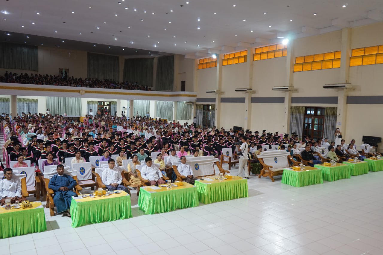 ရှေးဦးစွာ မွန်ပြည်နယ်အစိုးရအဖွဲ့ လူမှုရေးရာဝန်ကြီး ဦးစောကြည်နိုင်က သင်တန်းသား၊ သင်တန်းသူ မောင်မယ်များအနေဖြင့် မိမိတို့ရဲ့ သူနာပြုစုစောင့်ရှောက်မှုအရည်အသွေးတွေ တိုးတက်မြင့်မားလာအောင်ကြိုးစားရင်း ပြည်သူများကို ကျန်းမာရေးစောင့်ရှောက်မှု အရည်အသွေးပြည့်ဝစွာပေးနိုင်ရန်၊ တတ်မြောက်ထားတဲ့ ပညာတွေနဲ့ အရည်အချင်းပြည့်ပြည့် အဆင့်အတန်းရှိရှိ ဝန်ဆောင်မှုများပေးကြရန် သူနာပြုသားဖွားများရဲ့ ကျင့်ဝတ်၊ သိက္ခာတို့ကို လေးစားလိုက်နာ၍ မေတ္တာစိတ်အပြည့်အဝဖြင့် တာဝန်ထမ်းဆောင်ပေးကြရန် တိုက်တွန်းလိုပါကြောင်းဖြင့် အမှာစကားပြောကြားခဲ့သည်။
