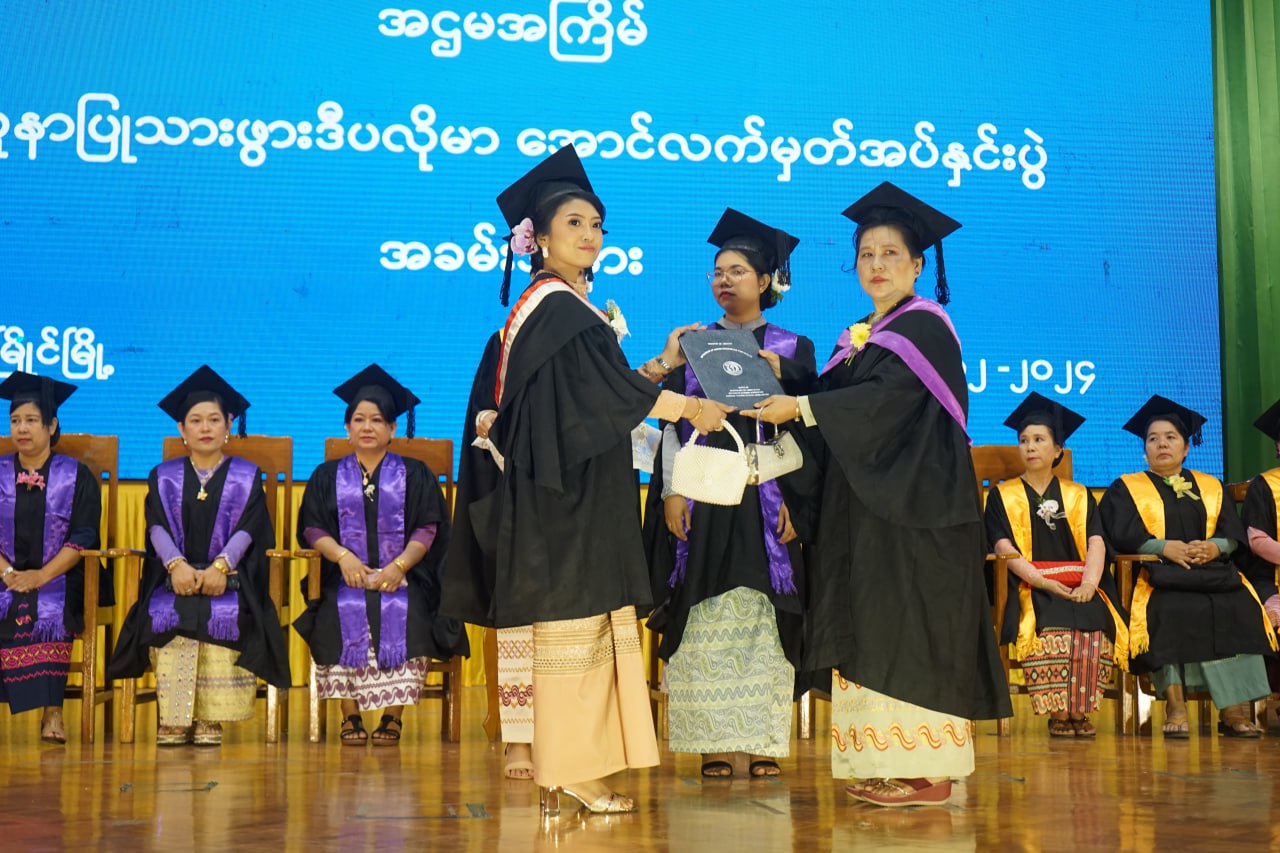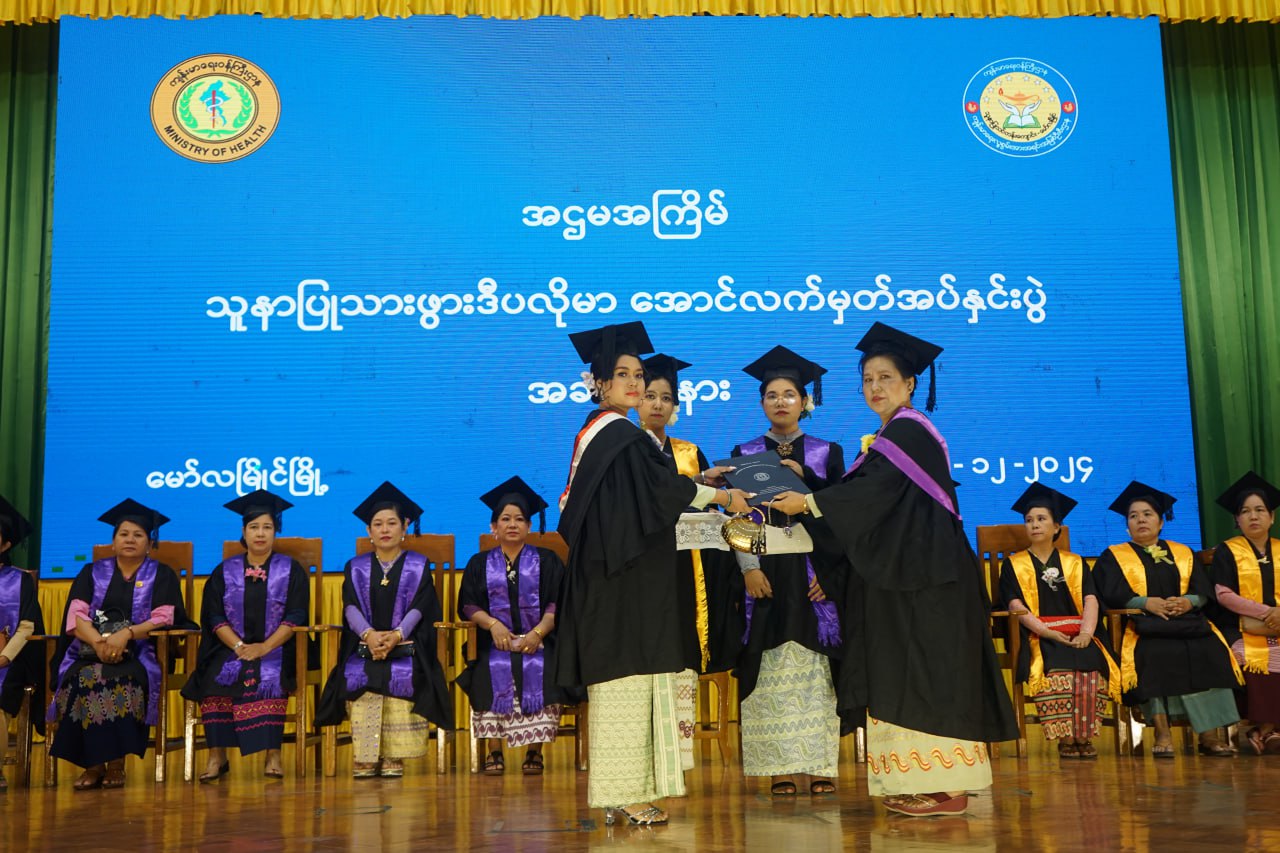 မွန်ပြည်နယ် မော်လမြိုင်မြို့တွင် သူနာပြုနှင့်သားဖွားဒီပလိုမာ အောင်လက်မှတ်အပ်နှင်းခြင်း အခမ်းအနားကို ယနေ့ နံနက်ပိုင်းက မော်လမြိုင်မြို့၊ ပြည်နယ်ခန်းမ၌ ကျင်းပပြုလုပ်ရာ မွန်ပြည်နယ်အစိုးရအဖွဲ့၀င် ဝန်ကြီးများ၊ ဌာနဆိုင်ရာတာဝန်ရှိသူများ၊ သင်တန်းသား သင်တန်းသူများ တက်ရောက်ခဲ့သည်။