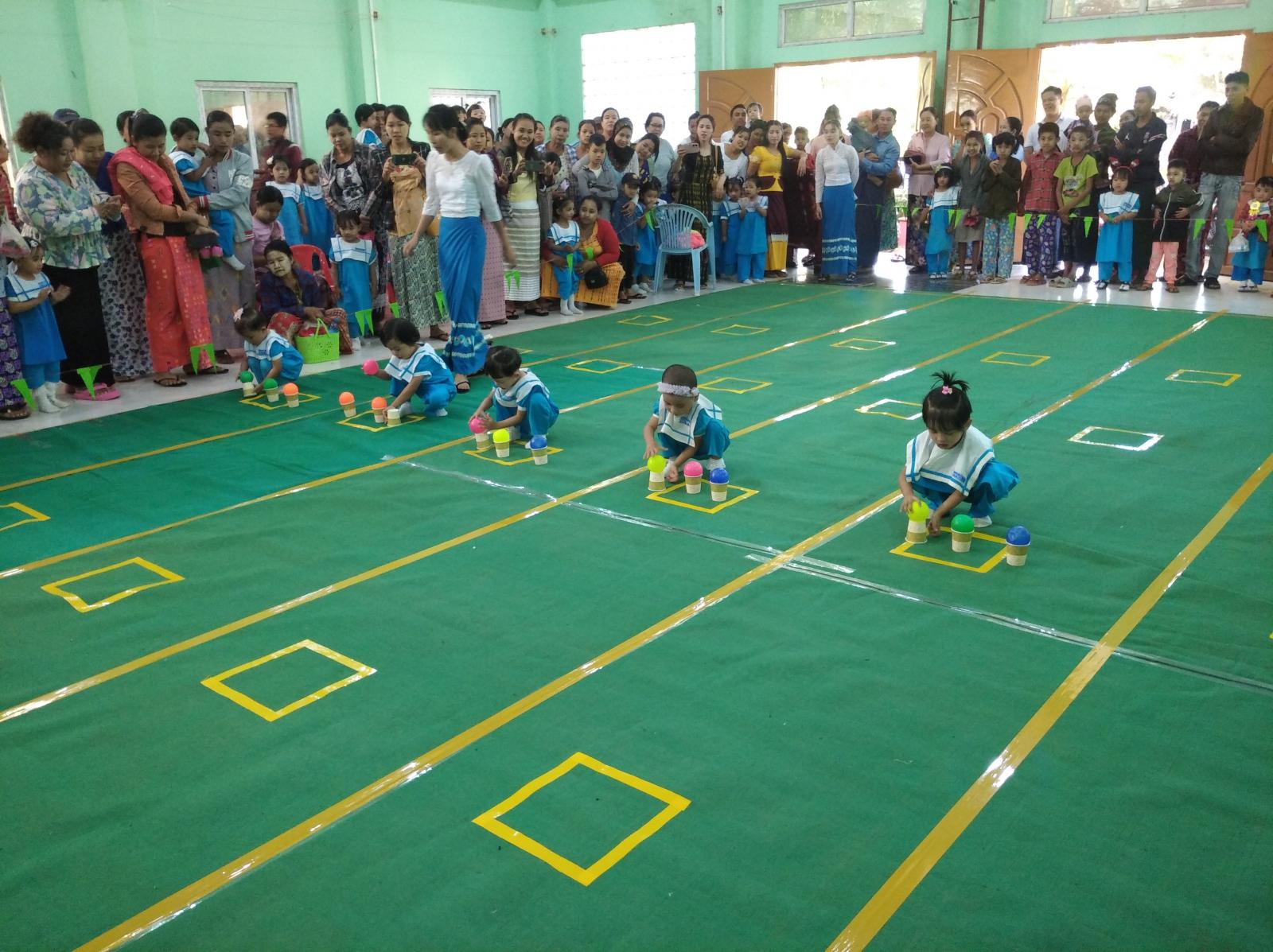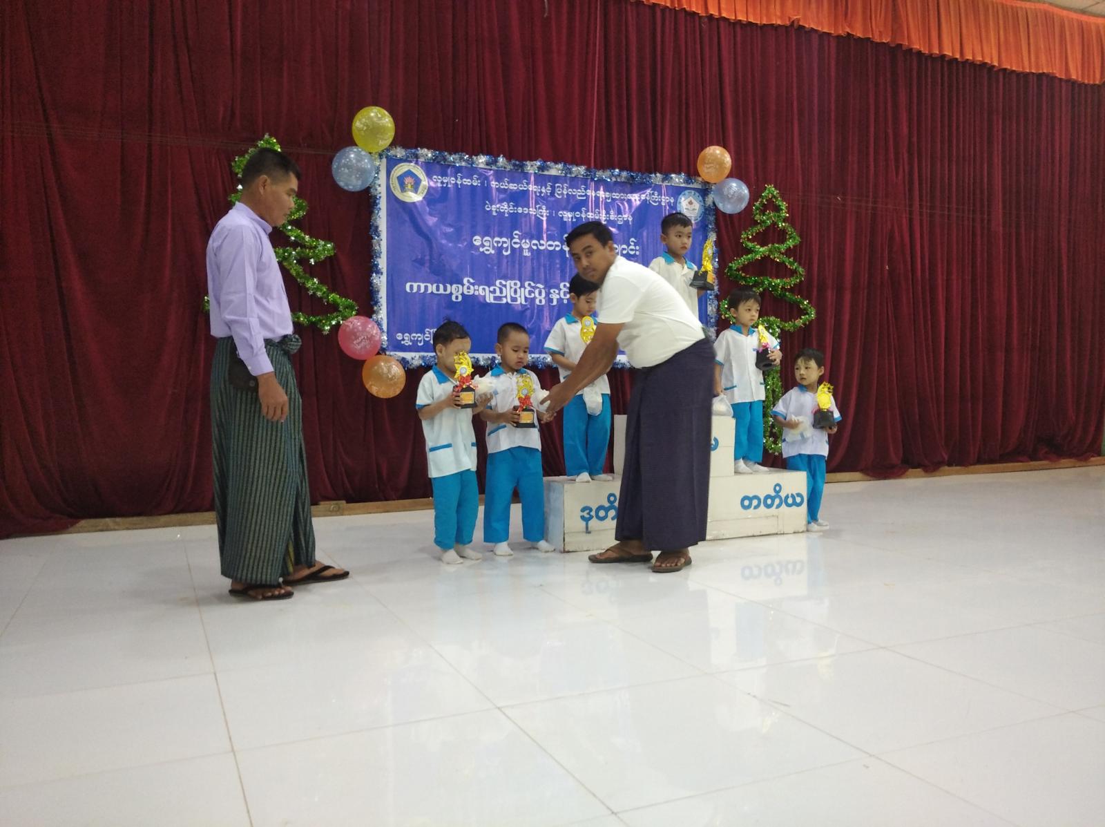 အခမ်းအနားတွင် ရွှေကျင်မြို့နယ်၊ လူမှုဝန်ထမ်းဦးစီးဌာနမှ ဦးစီးအရာရှိ ဒေါ်စုစုရီက မူလတန်းကြိုကျောင်းမှ ဒီဇင်ဘာလှုပ်ရှားမှုနှင့် လွတ်လပ်ရေးနေ့အကြို ကာယစွမ်းရည်ပြိုင်ပွဲများ ကျင်းပပြုလုပ်ခြင်း၏ ရည်ရွယ်ချက်နှင့် ပြိုင်ပွဲစည်းမျဉ်းစည်းကမ်းများကို ရှင်းလင်းပြောကြားခဲ့သည်။ ဆက်လက်၍ ရွှေကျင်မြို့နယ်၊ မူလတန်းကြိုကျောင်းမှ ကျောင်းသား/ကျောင်းသူ (၁၀၀) ဦးတို့က အားကစားပြိုင်ပွဲများ ယှဉ်ပြိုင်ကြရာ ဆုရရှိသည့် ကျောင်းသား/ကျောင်းသူများအား လူမှုဝန်ထမ်းဦးစီးဌာနမှ ဦးစီးအရာရှိ ဒေါ်စုစုရီနှင့် တာဝန်ရှိသူများက ဆုတံဆိပ်များနှင့် ကလေးများအတွက် ဖြည့်စွက်အဟာရ ပဲနို့နှင့် မုန့်များ ချီးမြှင့်ပေးခဲ့သည်။