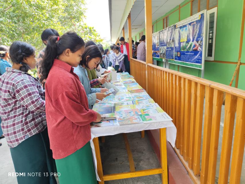 ဟောပြောပွဲအခမ်းအနားပြီးနောက် တက်ရောက်လာကြသည့် ကျောင်းသား/သူများသည် ခန်းမအတွင်း ပြသထားသော အသိပညာပေး နံရံကပ်စာစောင်များနှင့်စာအုပ်/စာစောင်များကို စိတ်ပါဝင်စားစွာ လေ့လာကြည့်ရှုခဲ့ကြကြောင်း သိရသည်။