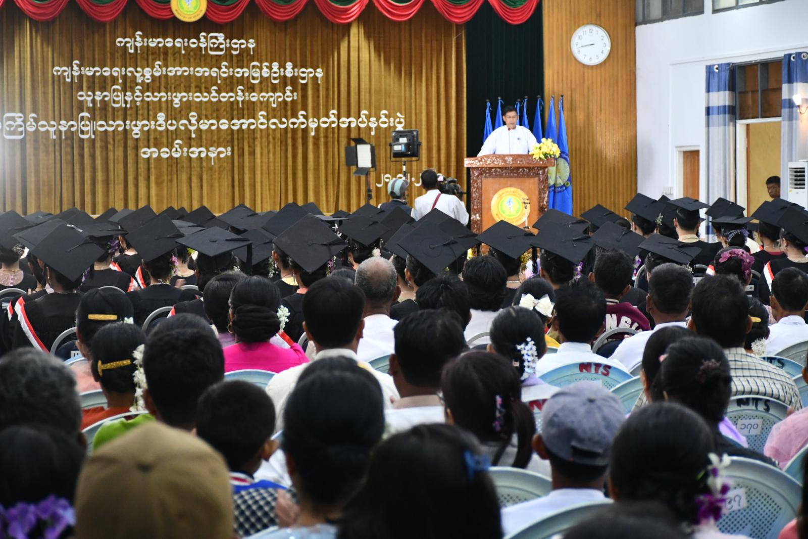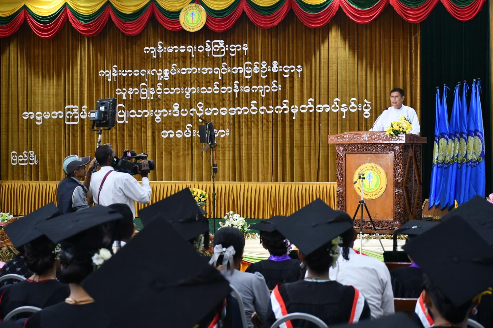 ထို့နောက် အခမ်းအနား ဒုတိယပိုင်းဆက်လက်ကျင်းပရာ သူနာပြုသားဖွားဒီပလိုမာအပ်နှင်းကြောင်း ကြေညာရန်အလို့ငှာ စီမံ/ပညာရေးအဖွဲ့ဝင်များမှ အတည်ပြုခြင်း၊ နိုင်ငံတော်သီချင်းဖြင့် အခမ်းအတားစတင်ခြင်း၊ ကျောင်းအုပ်ကြီးက သူနာပြု-သားဖွားဒီပလိုမာ(၃)နှစ် သင်တန်းသား/သူများအား အောင်လက်မှတ်များ ချီးမြှင့်အပ်နှင်းပြီး သင်တန်းဆင်းအမှာစကား ပြောကြားခဲ့ကြောင်း သိရသည်။