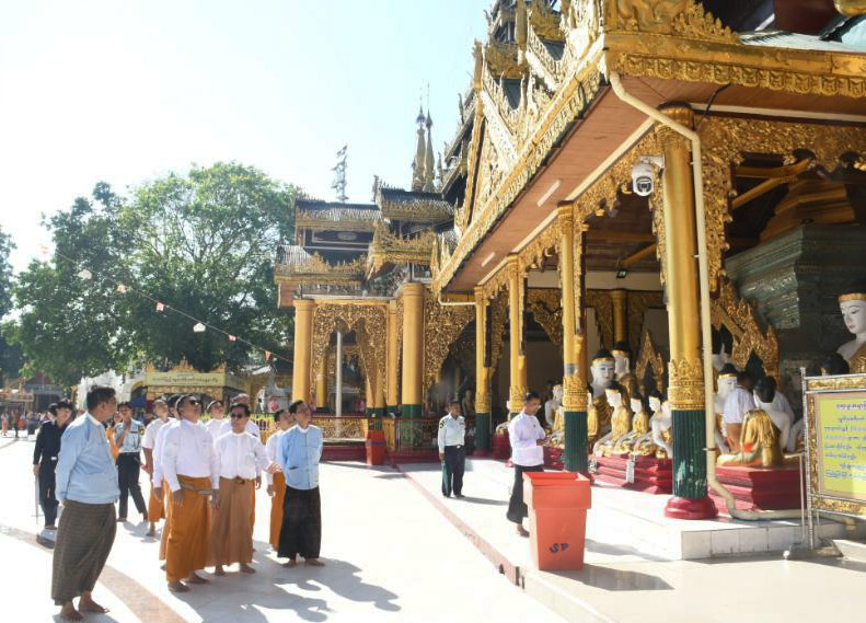 ထို့နောက် ဒုတိယဝန်ကြီးသည် အနောက်ဘက်စောင်းတန်းအတွင်း သန့်ရှင်းရေးဆောင်ရွက်ထားမှုနှင့် ရင်ပြင်တော်ပတ်လည် ဆီမီးခုံနှင့် စဉ့်ကွက်များ ပြုပြင်မွမ်းမံခြင်းလုပ်ငန်း ဆောင်ရွက်နေမှုတို့အား ရင်ပြင်တော်တစ်ပတ် လှည့်လည်ကြည့်ရှုစစ်ဆေး၍ အရည်အသွေးကောင်းမွန်စွာ ဆောင်ရွက်ရန်၊ သတ်မှတ်ချိန်အတိုင်း ပြီးစီးစေရန် မှာကြားခဲ့သည်။
