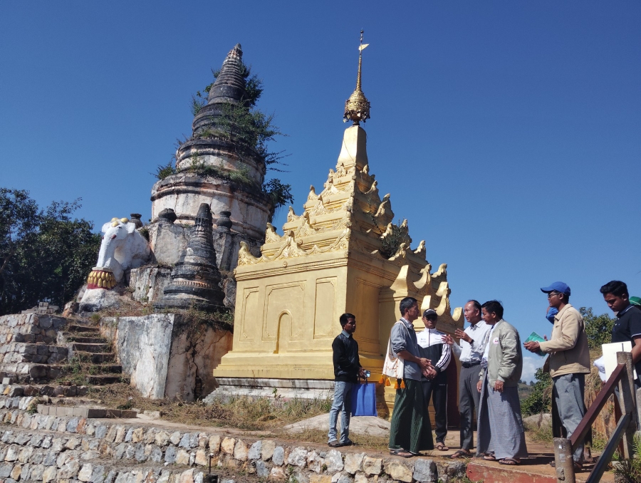 ရှမ်းပြည်နယ်(တောင်ပိုင်း)၊ နမ့်စန်ခရိုင်၊ မိုးနဲမြို့နယ် ဥယျာဉ်ရပ်ကွက်ရှိ ရှေးဟောင်းသမိုင်းဝင် ဆင်တောင်(လွိုင်စန့်) ဘုရားစေတီရှေးမူမပျက် ဘက်စုံပြုပြင်နိုင်ရေးအတွက် ရှမ်းပြည်နယ် ရှေးဟောင်းသုတေသနနှင့် အမျိုးသားပြတိုက်ဦးစီးဌာန ပြည်နယ်ညွှန်ကြားရေးမှူး ဦးဘုန်းကျော်နှင့် အဖွဲ့ဝင်များ၊ မြို့နယ်စီမံအုပ်ချုပ်ရေးအဖွဲ့ဥက္ကဋ္ဌ ဦးဝင်းမြင့်နှင့် အဖွဲ့ဝင်များ၊ မြို့နယ်ဂေါပကဥက္ကဋ္ဌ ဦးတိုးလှနှင့် ဆင်တောင်(လွိုင်စန့်) ရှေးဟောင်းယဉ်ကျေးမှုအမွေအနှစ် ထိန်းသိမ်းရေးနှင့် ကြီးကြပ်ရေးကော်မတီအတွင်းရေးမှူး ဦးစိုင်းမောင်ကြီးတို့က ဒီဇင်ဘာ ၂၈ ရက် နံနက် ၁၁ နာရီအချိန်တွင် ကွင်းဆင်းကြည့်ရှုခဲ့ကြောင်း သိရသည်။