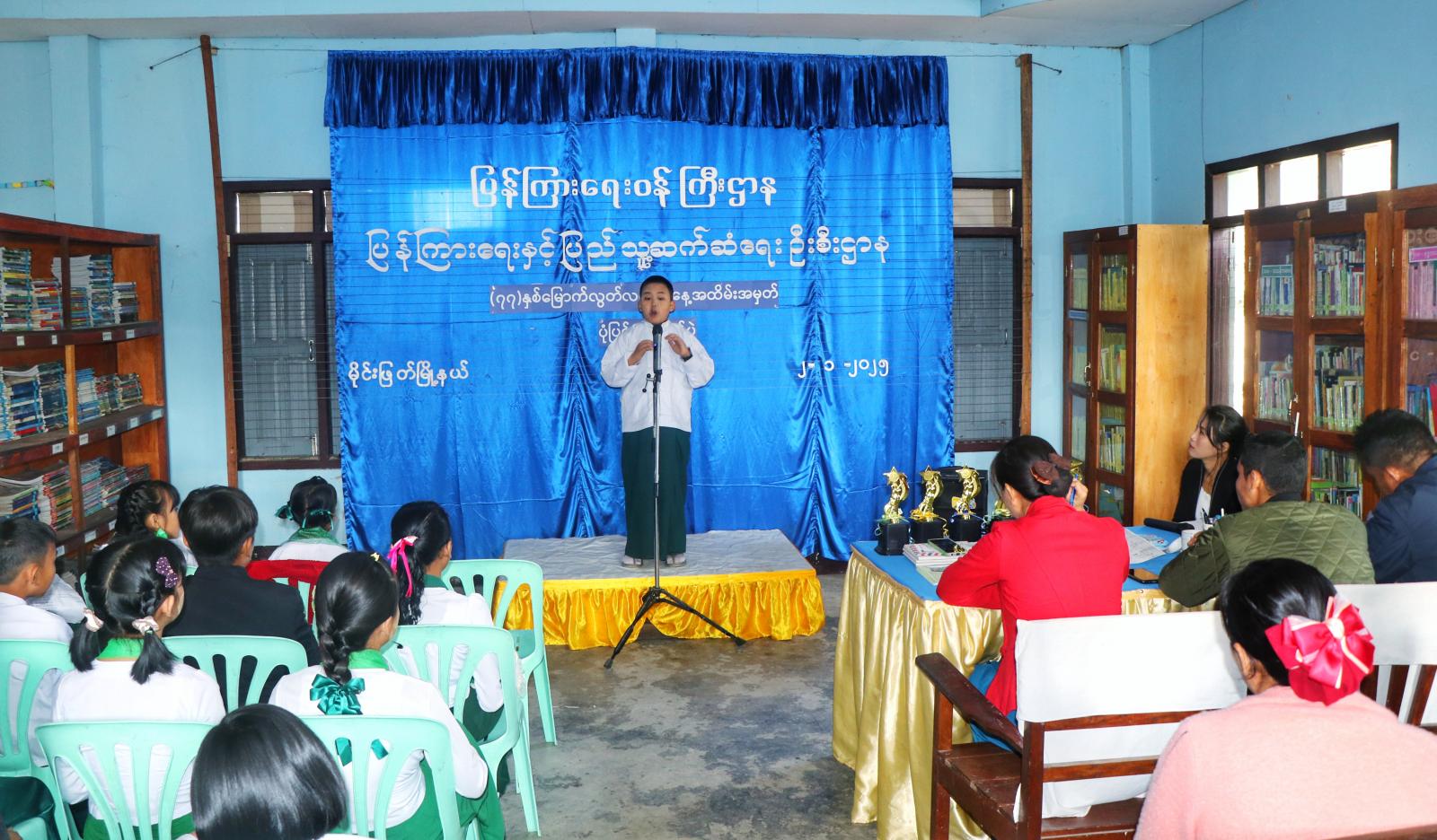 ရှေးဦးစွာ မြို့နယ်ပြန်ကြားရေးနှင့်ပြည်သူ့ဆက်ဆံရေးဦးစီးဌာနမှ ဦးစီးအရာရီ ဒေါ်အေးဝင်းခိုင်က ပြိုင်ပွဲများကျင်းပပြုလုပ်ရခြင်း၏ ရည်ရွယ်ချက်များနှင့် ပြိုင်ပွဲဝင်စည်းကမ်းချက်များကို ရှင်းလင်းပြောကြားခဲ့သည်။ ထို့နောက် ပြိုင်ပွဲကိုဆက်လက်ကျင်းပခဲ့ရာ မြို့နယ်အတွင်းရှိ အခြေခံပညာကျောင်းများမှ မူလတန်းအဆင့် ကျောင်းသား၊ ကျောင်းသူ(၁၂)ဦးတို့က စိတ်ကြိုက်ပုံပြင်များဖြင့် အသီးသီးယှဉ်ပြိုင်ခဲ့ကြသည်။