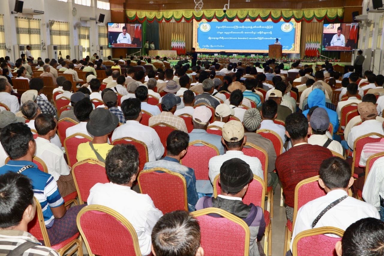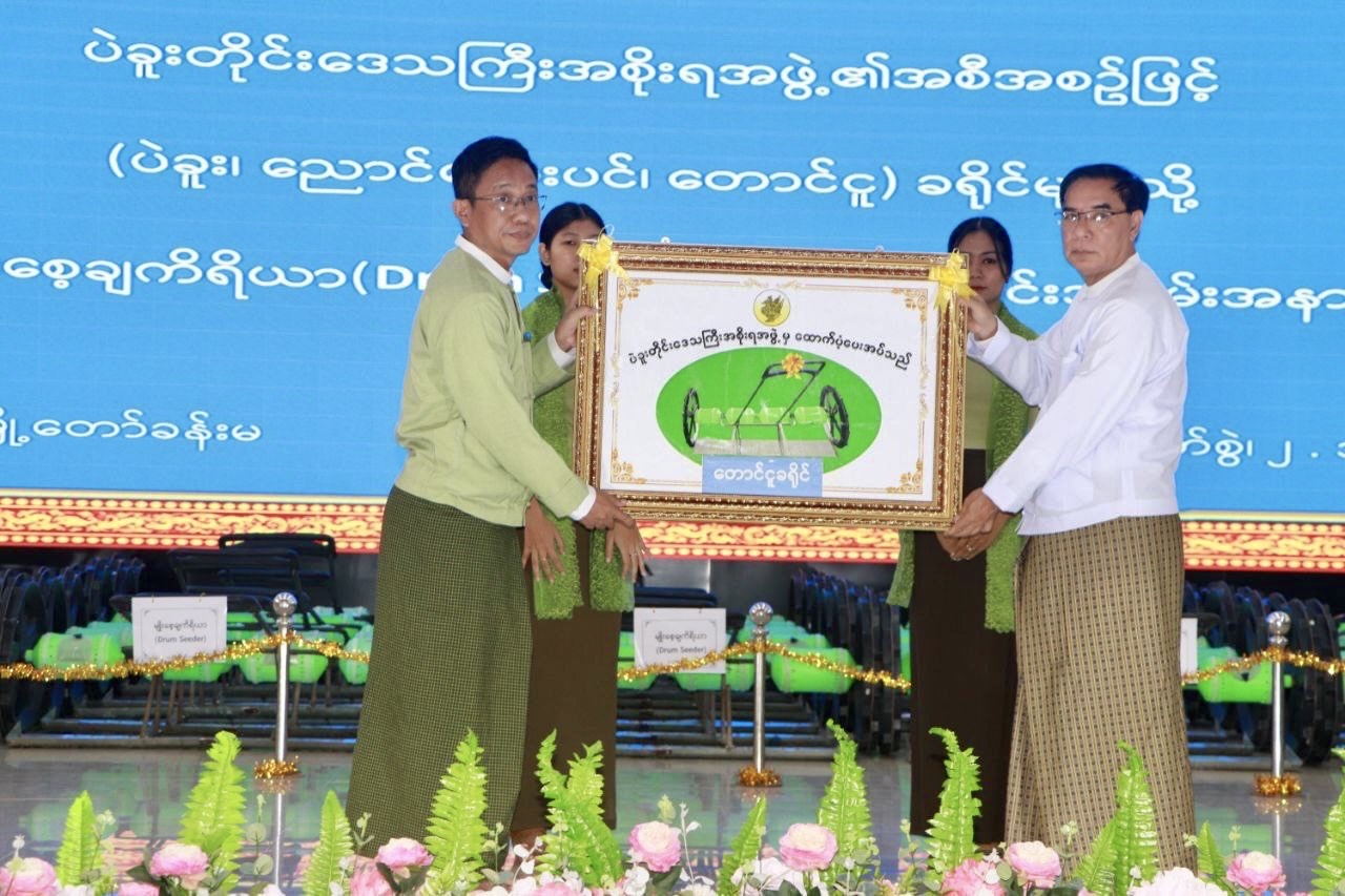 ထို့နောက် တိုင်းဒေသကြီးဝန်ကြီးချုပ် ဦးမျိုးဆွေဝင်းက ပဲခူးခရိုင်၊ ညောင်လေးပင်ခရိုင်နှင့် တောင်ငူခရိုင်စီမံအုပ်ချုပ်ရေးအဖွဲ့၊ ဥက္ကဋ္ဌများအား စပါးတိုက်ရိုက်မျိုးစေ့ချကိရိယာ(Drum Seeder)များကိုလည်းကောင်း၊ လုံခြုံရေးနှင့်နယ်စပ်ရေးရာဝန်ကြီး ဗိုလ်မှူးကြီး အောင်သောင်းထိုက်နှင့် စီးပွားရေးရာဝန်ကြီး ဦးတင်ဦးက မြို့နယ်အလိုက် တောင်သူများအား စပါးတိုက်ရိုက်မျိုးစေ့ချကိရိယာ (Drum Seeder)များကိုလည်းကောင်း အသီးသီးချီးမြှင့် ပေးအပ်ခဲ့သည်။