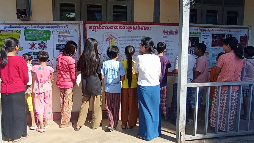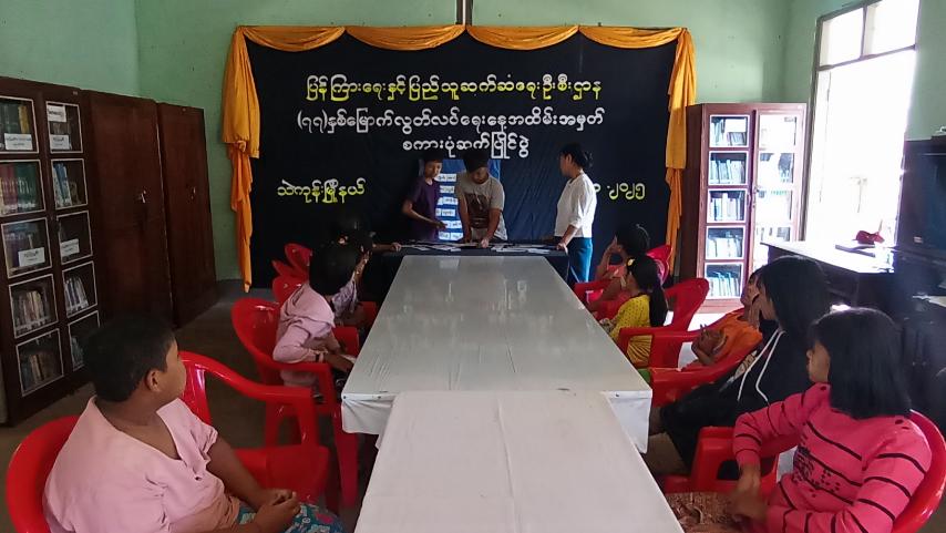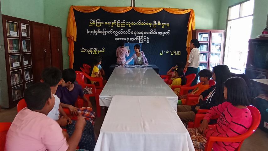 ထို့နောက် စကားပုံဆက်ပြိုင်ပွဲကျင်းပရာ ကျောင်းသား၊ ကျောင်းသူ ၂၀ ဦးတို့မှ ပါဝင်ယှဉ်ပြိုင်ခဲ့ကြပြီး ဆုရရှိသော ကျောင်းသား၊ ကျောင်းသူများကို မြို့နယ်ဦးစီးမှူးနှင့် တာဝန်ရှိသူများက ဆုလက်ဆောင်များ အသီးသီးချီးမြှင့်ပေးအပ်ခဲ့ပြီး ခင်းကျင်းပြသထားသော အသိပညာပေးနံရံကပ်စာစောင်များနှင့် စာအုပ်စာစောင်များအား ကျောင်းသား/ ကျောင်းသူများက စိတ်ဝင်စားစွာ ကြည့်ရှုလေ့လာခဲ့ကြသည်။