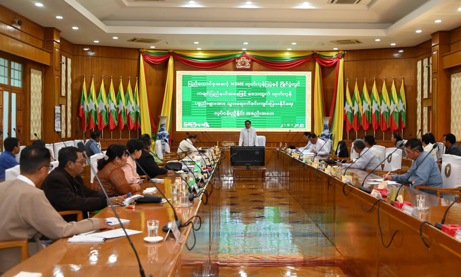 အဆိုပါ လုပ်ငန်းညှိနှိုင်းအစည်းအဝေးတွင် ပြည်နယ်ဝန်ကြီးချုပ်က ယခုနှစ် ဖေဖော်ဝါရီလ ၁၂ ရက်နေ့တွင် ပြည်ထောင်စုနယ်မြေ နေပြည်တော်၌ ယခင်နှစ်များနည်းတူ MSME ထုတ်ကုန်ပြပွဲကို (၅)ရက်ကြာ ကျင်းပပြုလုပ်သွားမည်ဖြစ်သည့်အပြင် ယခုနှစ်တွင် ပြိုင်ပွဲအဖြစ် MSME လုပ်ငန်းများနှင့် ဒေသတစ်ခုထုတ်ကုန်တစ်ခု(OROP) ထုတ်ကုန်လုပ်ငန်းများကို သီးခြားဆုများအဖြစ် ချီးမြှင့်ပေး အပ်သွားမည်ဖြစ်ပါကြောင်း၊ MSME လုပ်ငန်းရှင်များအနေဖြင့် တက်တက်ကြွကြွ ပါဝင်ယှဉ်ပြိုင်နိုင် ရေး၊ ဆုများရရှိနိုင်ရေးအတွက် ပြင်ဆင်ဆောင်ရွက် ထားရှိရမည့်အချက်များနှင့် ပံ့ပိုးပေးရမည့် အချက်များကို ဆွေးနွေးပေးစေလိုပါကြောင်း၊ ယခုနှစ်ပြပွဲကို ပြည်နယ်ကိုယ်စားပြုပါဝင်ယှဉ်ပြိုင်ရမည်သာမက တိုင်းဒေသကြီးနှင့်ပြည်နယ်အသီးသီးမှ ထုတ်ကုန်များ၊ တီထွင်ဆန်းသစ်များကို လေ့လာနိုင်မည်ဖြစ်ပြီး ဈေးကွက်အချိတ်အဆက်နှင့် အရည်အသွေးမြှင့် ပိုမိုထုတ်လုပ်နိုင်ရေးကိုလည်း ချိတ်ဆက်သိရှိနိုင်မည်ဖြစ်ပါကြောင်း တိုက်တွန်းပြောကြားသည်။