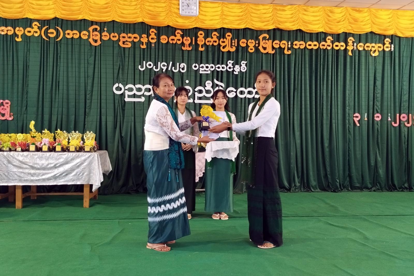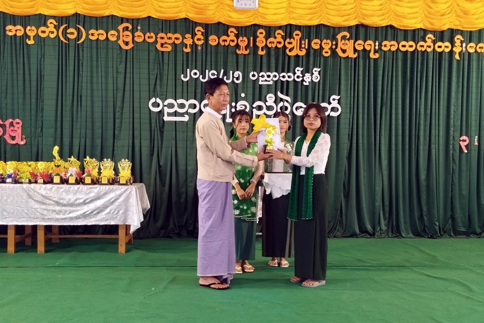 ဆက်လက်၍ ကျောင်းအုပ်ဆရာမကြီး ဒေါ်မိုးမိုးအောင်က ကျေးဇူးတင်စကားပြောကြားပေးခဲ့ပြီး G-6 ကျောင်းသား/ကျောင်းသူများက စည်းလုံးခြင်းအတွက် သီချင်းဖြင့် သီဆို ဖျော်ဖြေပေးခဲ့ပြီး ဆုရ ကျောင်းသား/ကျောင်းသူများအား ခရိုင်တာဝန်ခံ ပညာရေးမှူး၊ မြို့နယ်ပညာရေးမှူးနှင့် တာဝန်ရှိသူ အသီးသီးက ဆုများ ချီးမြှင့်ခဲ့ကြပြီး ကျောင်းသား/ကျောင်းသူများမှ သီချင်းများဖြင့် သီဆိုဖျော်ဖြေပေးခဲ့ကြောင်း သိရသည်။