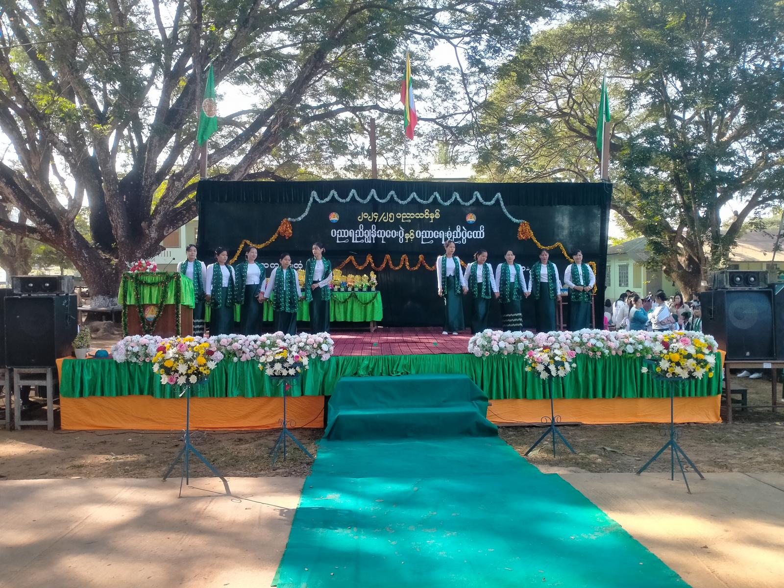 ရှမ်းပြည်နယ်(အရှေ့ပိုင်း)၊ မိုင်းတုံခရိုင်၊ မိုင်းတုံမြို့နယ်၊ ၂၀၂၄-၂၀၂၅ ပညာသင်နှစ်၊ ပညာရည်ချွန်ဆုပေးပွဲနှင့် ပညာရေးစုံညီပွဲတော်ကို ယနေ့နံနက်ပိုင်းက အ.ထ.က မိုင်းတုံစာသင်ကျောင်းဝန်း၌ကျင်းပရာ ဆရာမများက “ဘက်စုံဂုဏ်ရည်ဒို့လှမ်ချီ”သီချင်းဖြင့် အခမ်းအနားဖွင့်လှစ်ခဲ့ကြောင်း သိရသည်။