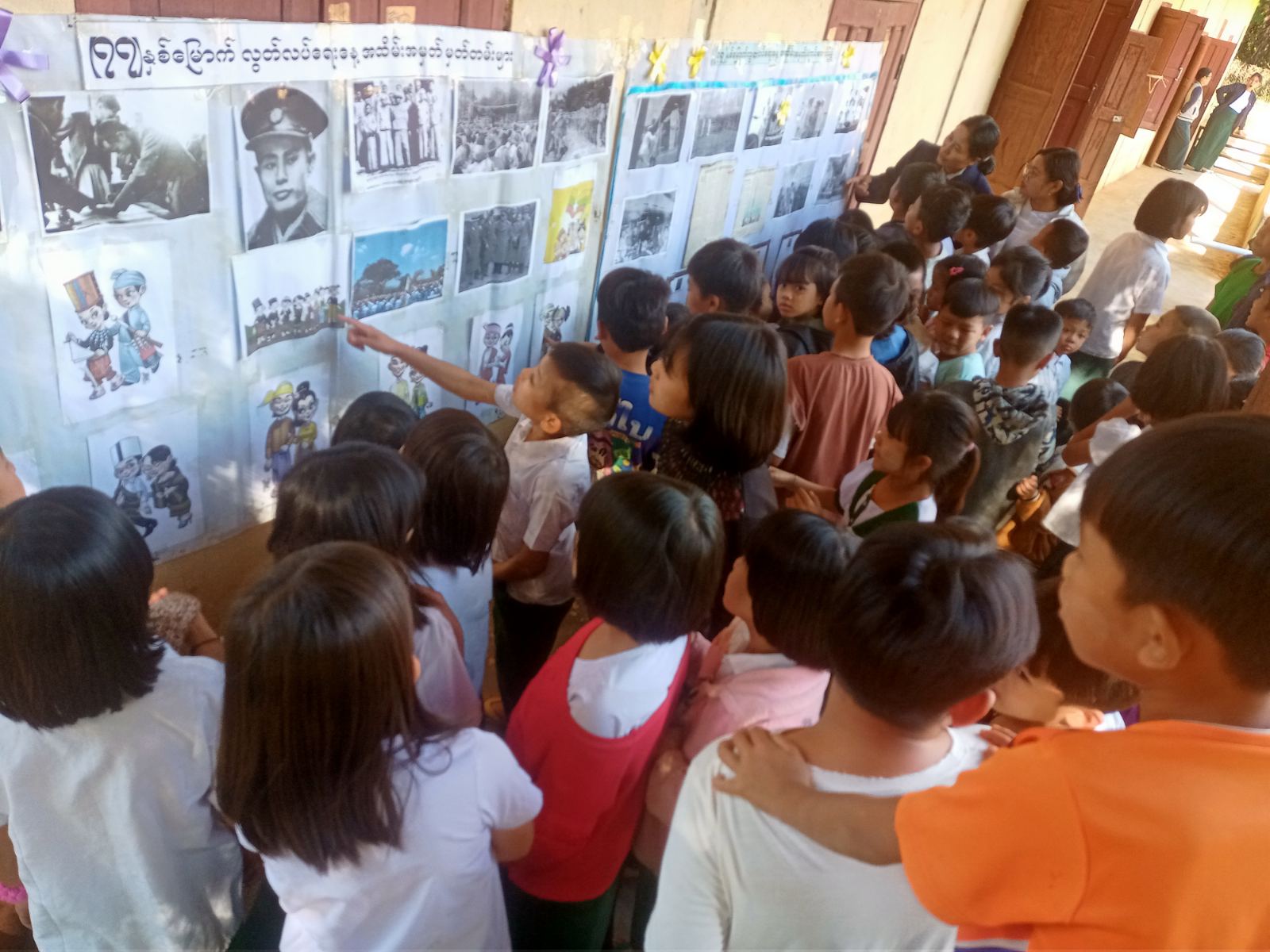 ထို့နောက် (၇၇)နှစ်မြောက် လွတ်လပ်ရေးနေ့အထိမ်းအမှတ် အသိပညာပေးနံရံကပ်စာစောင်များကို ကျောင်းသား/ကျောင်းသူများ ကြည့်ရှုလေ့လာကြကြောင်း သိရသည်။