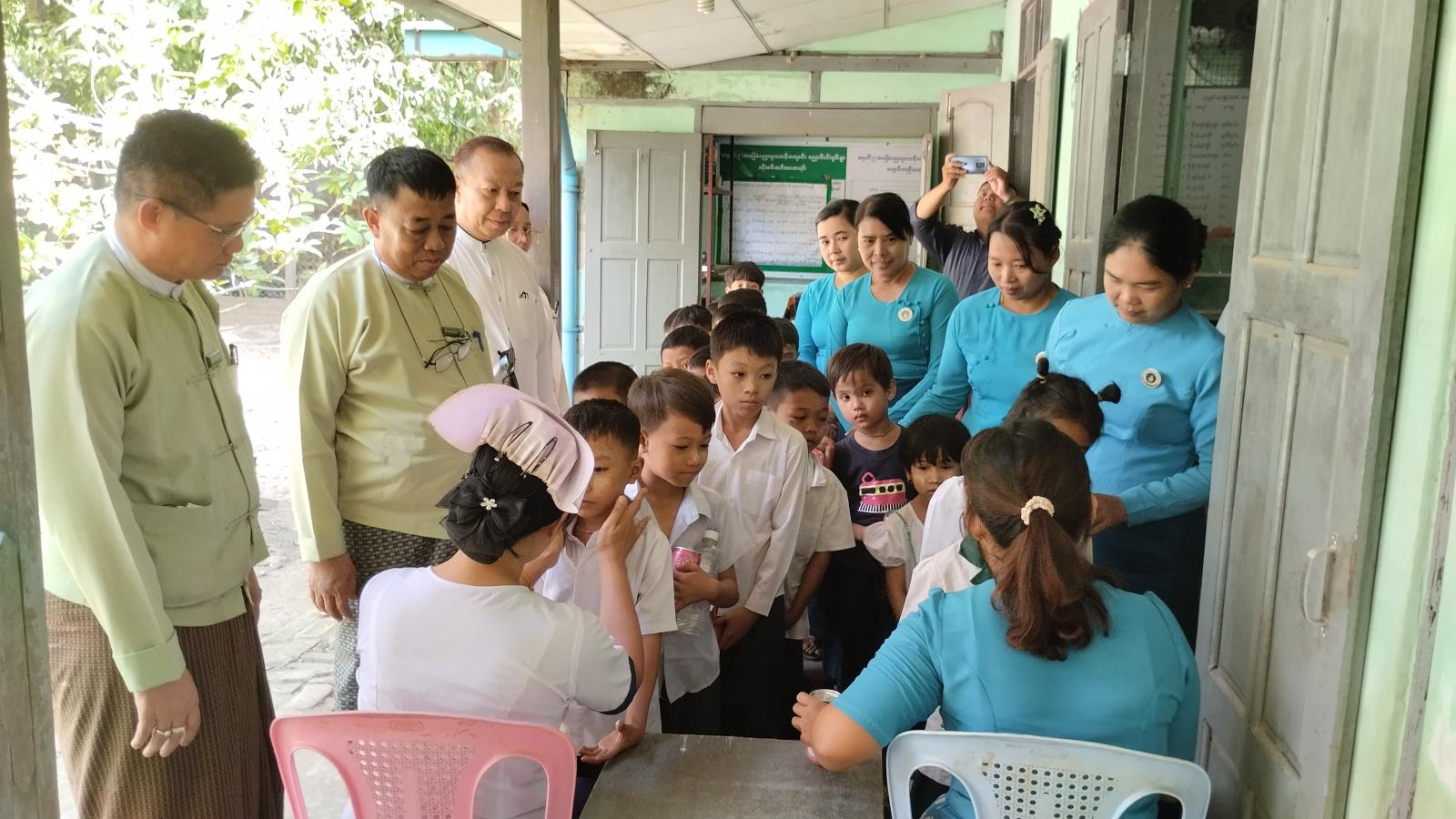 ဧရာဝတီတိုင်းဒေသကြီး ကျုံပျော်ခရိုင် ၊ ကျုံပျော်မြို့နယ် ပြည်သူ့ကျန်းမာရေးဦးစီးဌာနမှ ကျောင်းအခြေပြု တီဘီရောဂါ ကွင်းဆင်းရှာဖွေခြင်းနှင့် ကျန်းမာရေး ပညာပေးခြင်းကို ယမန်နေ့မွန်းလွဲ ၁ နာရီခွဲအချိန်က ကျုံပျော်မြို့ နယ် ၊ညောင်ပင်ကွင်းကျေးရွာ အခြေခံပညာမူလတန်းကျောင်း၌ ဆောင်ရွက်ခဲ့သည်။