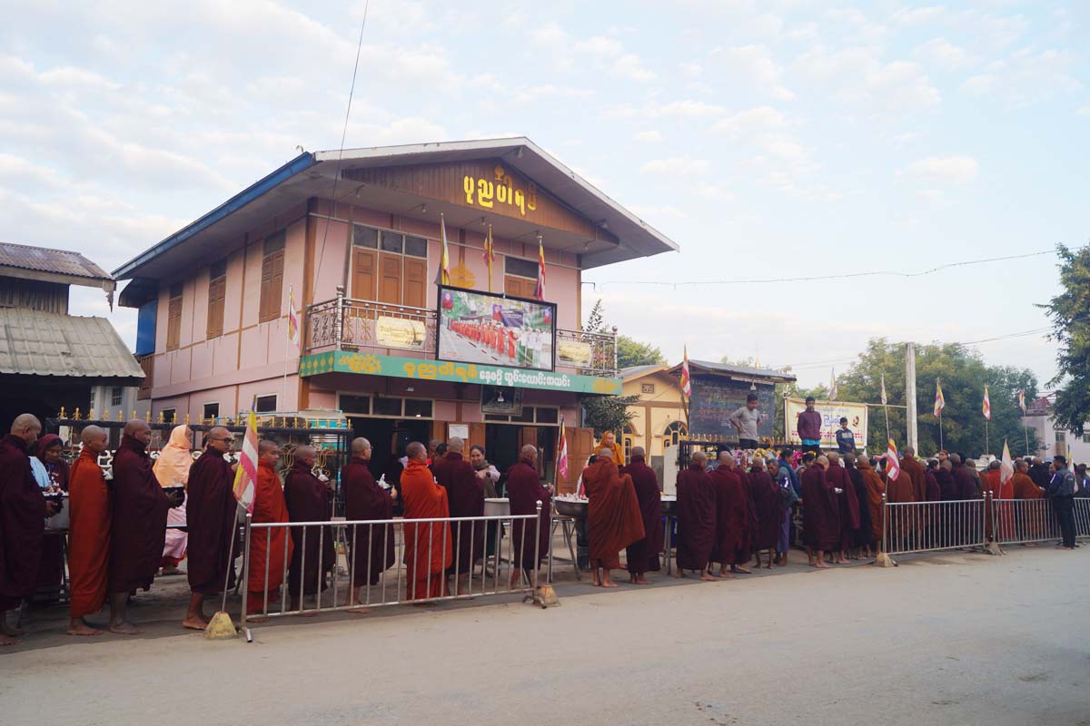 အဆိုပါ မဟာစာရေးတံမဲ လောင်းလှူပွဲအခမ်းအနားတွင် ပုညပါရမီဆွမ်းလောင်းအသင်းမှ တာဝန်ရှိသူများသည် မြို့နယ်အတွင်းရှိ ပြည်သူများလှူဒါန်းကြသော လှူဖွယ်ဝတ္ထုပစ္စည်းများကို မြို့ပေါ်ရပ်ကွက်များရှိ ဘုန်းတော်ကြီးကျောင်း (၁၉)ကျောင်းမှ သံဃာတော်(၁၉၆)ပါးနှင့် သီလရှင်(၂၉)ပါးတို့အား မဟာစာရေးတံမဲလောင်းလှူပူဇော်ခဲ့ကြသည်။