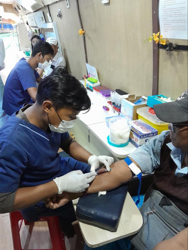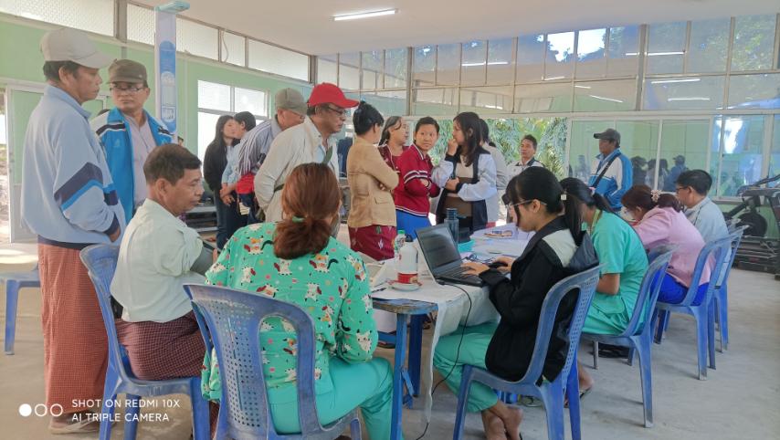 မြို့နယ်လူမှုဖူလုံရေးဦးစီးမှူး ဒေါ်ဥမ္မာမြင့်၏ အနီးကပ်ကြီးကြပ်မှုဖြင့် လူမှုဖူလုံရေးဝန်ထမ်းများမှ စာရင်းရေးသွင်းပြီး သုခမင်္ဂလာကုမ္ပဏီ(MMU)အထူးကုဆေးခန်းမှ ဆရာဝန်များနှင့်ဝန်ထမ်းများက ယနေ့ နံနက်ပိုင်းတွင် ရွှေမျက်မှန်ဘုရားဓမ္မာရုံ၌ ဆက်လက်၍ ကိုယ်အလေးချိန်ချိန်ပေးခြင်း၊ သွေးပေါင်ချိန်ပေးခြင်း၊ ဆီးချို၊ သွေးချိုစစ်ဆေးပေးခြင်း၊ လေးဘက်နာနှင့် စီပိုး၊ ဘီပိုး ရှိ၊ မရှိ စစ်ဆေးကုသပေးခဲ့ပြီး လတ်တလောခံစားနေရသော ရောဂါဝေဒနာအခြေအနေတို့ကို စမ်းသပ်စစ်ဆေးပေးခြင်း၊ လမ်းညွှန်မှုပေးခြင်းများကို ဝန်ဆောင်မှုပေးကာ လိုအပ်သည့်ဆေးဝါးများကို စမ်းသပ်ထုတ်ပေးခဲ့ရာ မြို့နယ်အမျိုးသမီးရေးရာအဖွဲ့ဥက္ကဋ္ဌ ဒေါ်နန်းမြအေးနှင့် အဖွဲ့ဝင်များ၊ မိခင်နှင့်ကလေးစောင့်ရှောက်ရေးအသင်းအဖွဲ့ဝင်များက ကိုယ်တိုင်ဆေးကုသမှုခံယူပြီး ကြည့်ရှုအားပေးခဲ့ကြကြောင်း သိရသည်။