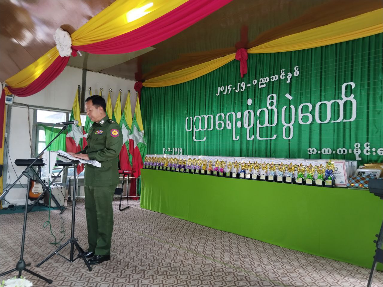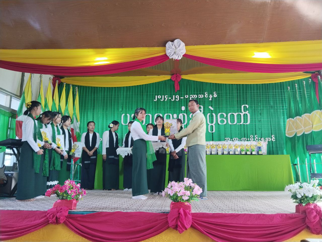 ပညာရေးစုံညီပွဲတော်သို့ တက်ရောက်လာကြသော ဌာနဆိုင်ရာများ၊ ကျောင်းအကျိုးတော်ဆောင်အဖွဲ့များက ပြည်နယ်အဆင့်၊ ခရိုင်အဆင့်၊ မြို့နယ်အဆင့်နှင့် ကျောင်းအဆင့်ပြိုင်ပွဲများတွင် ထူးချွန်ဆုရရှိသော ဆရာ/ဆရာမများနှင့် ကျောင်းသား/ကျောင်းသူများ၊ ကျောင်းတက်မှန်ဆုရရှိသည့် ဆရာ/ဆရာမများနှင့် ကျောင်းသား၊ကျောင်းသူများကို ဆုတံဆိပ်၊ ဂုဏ်ပြုမှတ်တမ်းနှင့် ဂုဏ်ပြုဆုငွေများ အသီးသီးပေးအပ်ချီးမြှင့်ခဲ့ကြောင်း သိရှိရသည်