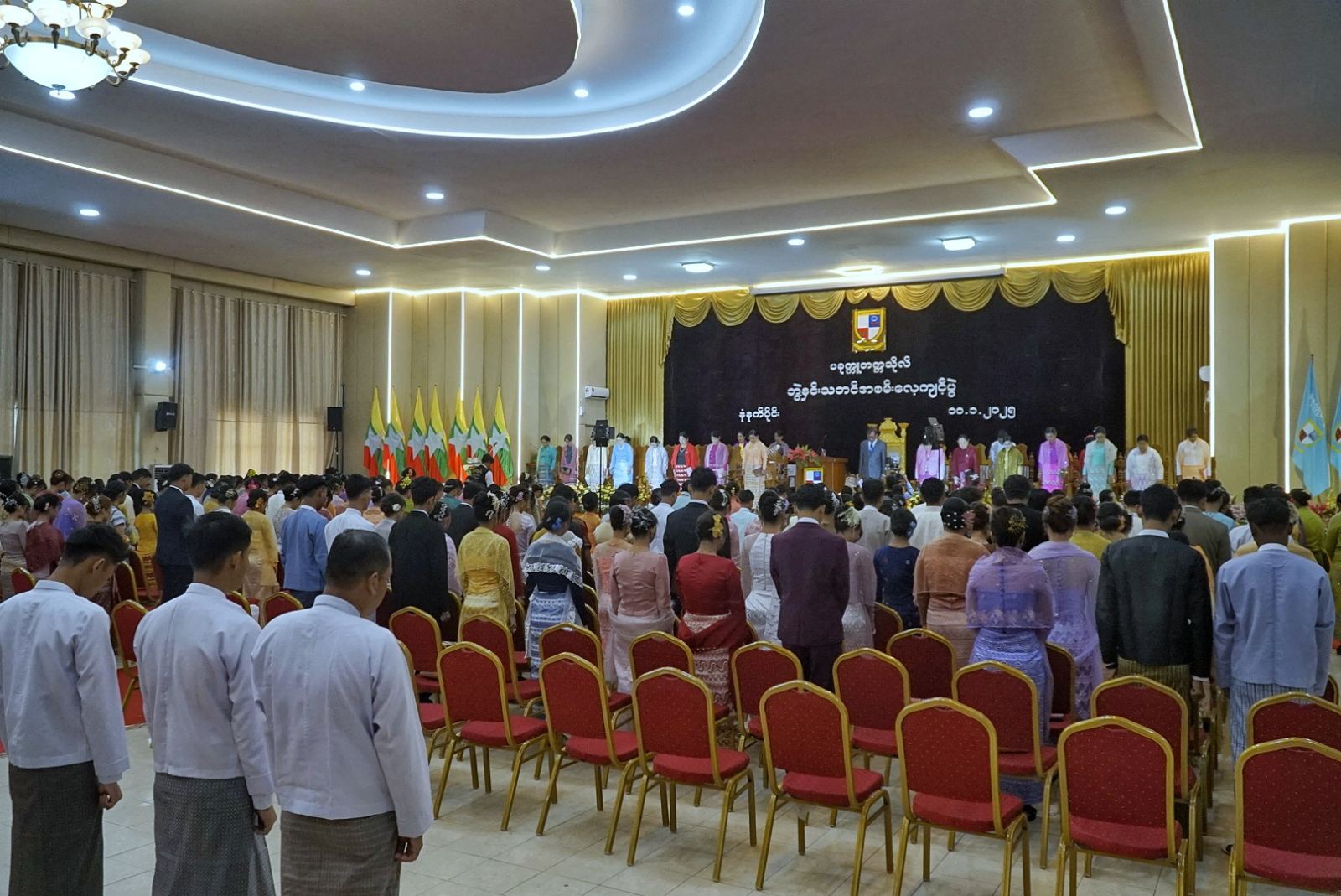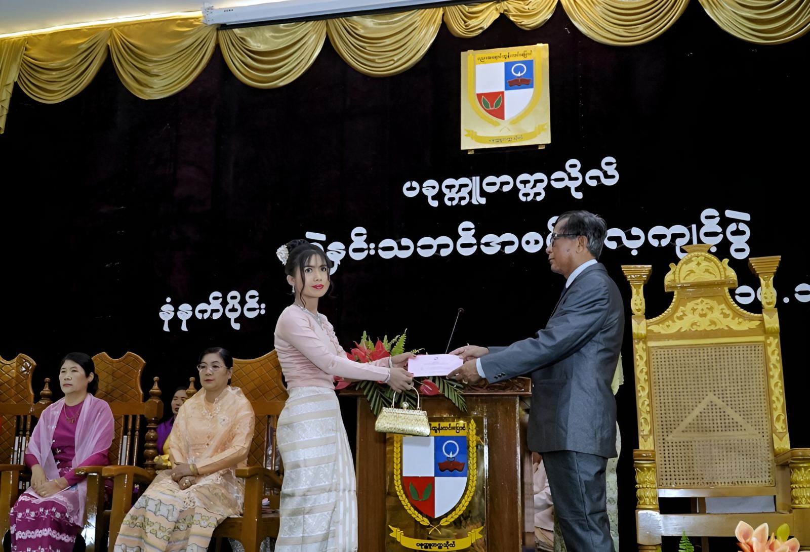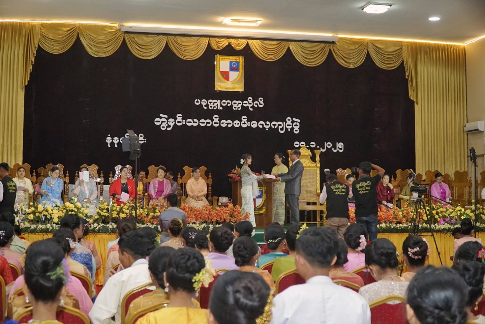 ရှေးဦးစွာ ပခုက္ကူတက္ကသိုလ်၊ ခေတ္တပါမောက္ခချုပ် ဒေါက်တာ တင်ထွန်းအောင်ဦးဆောင်သော သဟာရအဖွဲ့ဝင်များ ဘွဲ့နှင်းသဘင်ခန်းမစင်မြင့်ထက်သို့ ကြွရောက်နေရာယူကြပြီး ခေတ္တပါမောက္ခချုပ်က ဘာသာရပ်အလိုက်စာမေးပွဲများကို ကောင်းစွာအောင်မြင်ပေါက်မြောက်ခဲ့ကြသည့် ကျောင်းသား၊ကျောင်းသူများအား ဘွဲ့နှင်းသဘင်အစမ်းလေ့ကျင့် ပေးအပ်သည်။