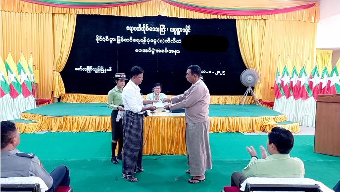 ထို့နောက် ခရိုင်နိုင်ငံ့စီးပွားမြှင့်တင်ရေး ရန်ပုံငွေ စီမံခန့်ခွဲမှုကော်မတီဥက္ကဋ္ဌ ဦးလွင်ကိုဦး၊ မြို့နယ်နိုင်ငံ့စီးပွားမြှင့်တင်ရေး ရန်ပုံငွေစီမံခန့်ခွဲမှုကော်မတီဥက္ကဋ္ဌ ဦးခင်မောင်ဦး၊ မြို့နယ်စီမံကိန်းဦးစီးဌာန လက်ထောက်ညွှန်ကြားရေးမှူး ဒေါ်မာမာဆန်းနှင့် မြို့နယ်စိုက်ပျိုးရေးဦးစီးဌာန ဦးစီးအရာရှိ ဦးမောင်မောင်သွင်တို့မှ နိုင်ငံစီးပွားမြှင့်တင်ရေးရန်ပုံငွေ (၈)ဘီလီယံ ပေးအပ်ငွေများအား ဆန်စက်လုပ်ငန်းရှင်များ၊ တောင်သူများထံသို့ လက်ဝယ်အရောက် ပေးအပ်ခဲ့ကြောင်း သိရသည်။