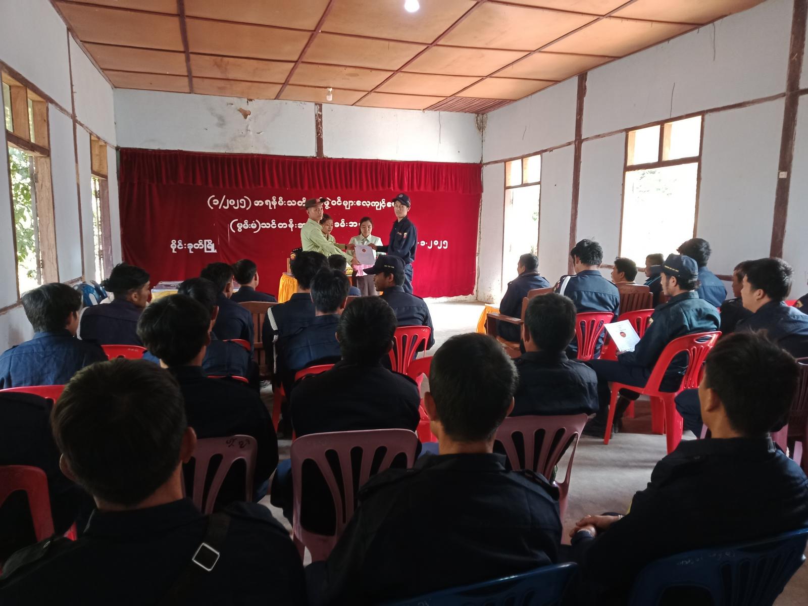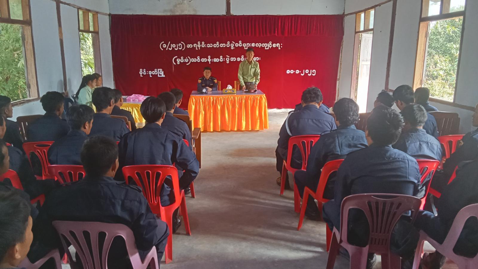 ရှမ်းပြည်နယ်(အရှေ့ပိုင်း)၊ မိုင်းဆတ်ခရိုင်၊ မိုင်းခုတ်မြို့၊ မီးသတ်ဦးစီးဌာနမှ ကြီးမှူးဖွင့်လှစ်သည့် (၁/၂၀၂၅) အရန်မီးသတ်တပ်ဖွဲ့ဝင်များလေ့ကျင့်ရေး (မွမ်းမံ)သင်တန်းဆင်းပွဲကို ယမန်နေ့နံနက် ၁၀ နာရီအချိန်က အထွေထွေအုပ်ချုပ်ရေးဦးစီးဌာန အစည်းအဝေးခန်းမ၌ ကျင်းပခဲ့သည်။