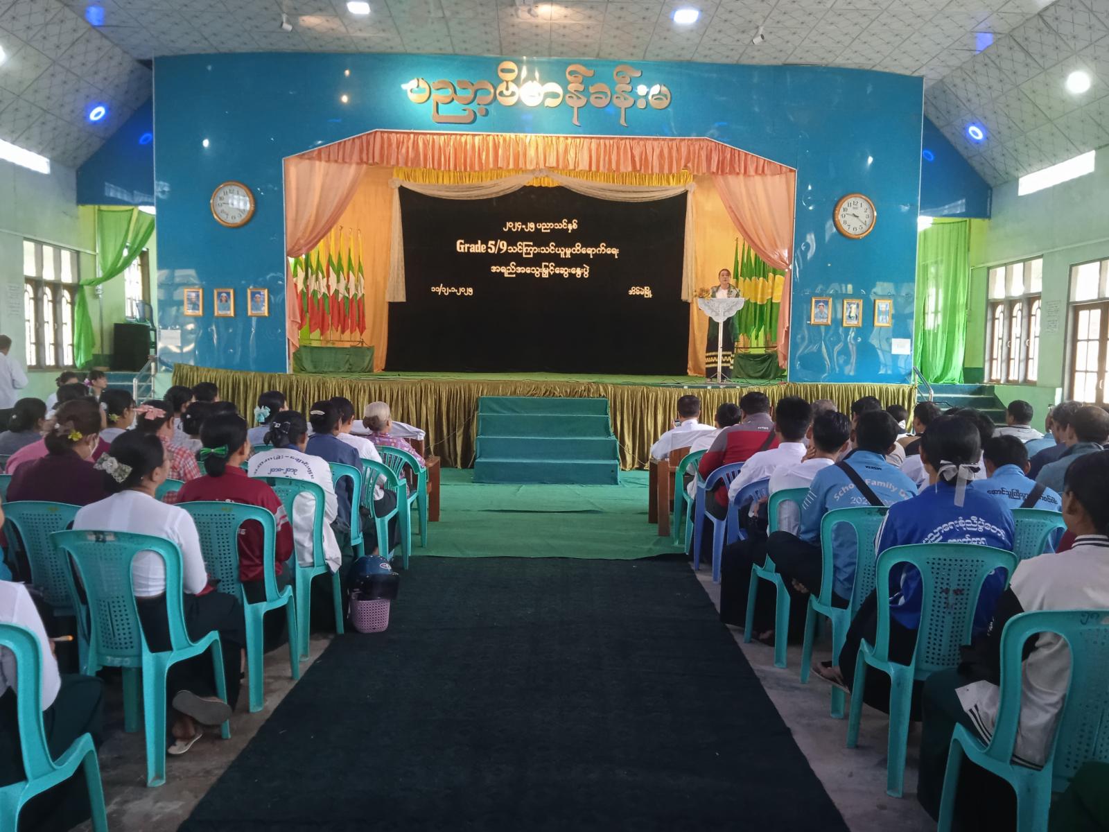 ဧရာဝတီတိုင်းဒေသကြီး၊ မြောင်းမြခရိုင်၊ အိမ်မဲမြို့နယ် အ-ထ-က (၂)ကျောင်း ပညာ့ဗိမာန်ခန်းမတွင် ၂၀၂၄- ၂၀၂၅ ပညာသင်နှစ် Grade-5/Grade-9 သင်ကြားသင်ယူမှုထိရောက်ရေးအရည်အသွေးမြှင့်ဆွေးနွေးပွဲကို ယနေ့ နံနက် ၉ နာရီအချိန်က ကျင်းပခဲ့သည်။