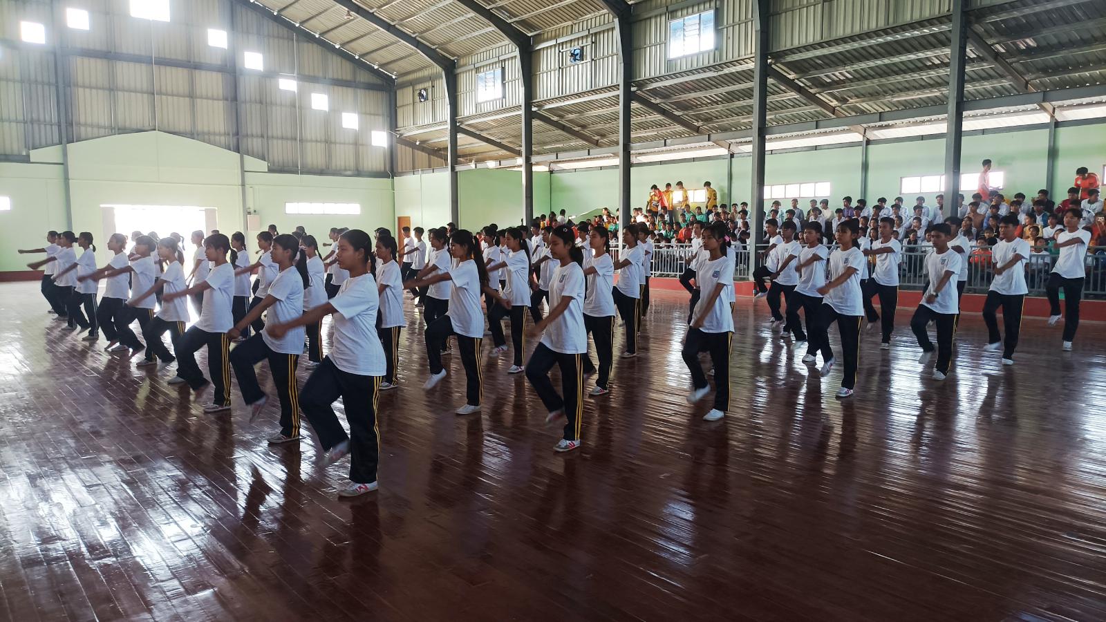 အခမ်းအနားတွင် ရှေးဦးစွာ ပြည်ခရိုင်စီမံအုပ်ချုပ်ရေးအဖွဲ့ဥက္ကဋ္ဌ ဦးသိန်းအောင်က အဖွင့်အမှာစကားပြောကြားပြီး ပြိုင်ပွဲဝင်အားကစားသမားများက အားကစားသစ္စာအဓိဌာန်ရွတ်ဆိုခြင်း၊ ခရိုင်စီမံအုပ်ချုပ်ရေးအဖွဲ့ဥက္ကဋ္ဌနှင့် ဖိတ်ကြားထားသည့်ဧည့်သည်များက ပြိုင်ပွဲဝင်အားကစားသမားများအား လိုက်လံနှုတ်ဆက်ခြင်း၊ ပထမနှစ်နှင့်ဒုတိယနစ် ကျောင်းသား၊ကျောင်းသူများက စုပေါင်းကိုယ်လက် ကြံ့ခိုင်ရေးလေ့ကျင့်ခန်းအတွဲအမှတ် (၁)နှင့် (၂)တို့ဖြင့် သရုပ်ပြ တင်ဆက်ခြင်း၊ တတိယနှစ်နှင့် စတုတ္ထနှစ်ကျောင်းသား၊ ကျောင်းသူများက "ထာဝရသစ္စာသီချင်းဖြင့် ကပြဖျော်ဖြေခြင်း၊ တတိယနှစ်နှင့် စတုတ္ထနှစ် ကျောင်သား၊ကျောင်းသူများက စုပေါင်းကိုယ်လက်ကြံ့ခိုင်ရေးလေ့ကျင့်ခန်း အတွဲအမှတ် (၃)နှင့် (၄)တို့ဖြင့် သရုပ်ပြ တင်ဆက်ခြင်း၊ စတုတ္ထနှစ် ကျောင်းသား၊ ကျောင်းသူများက Fitness Dance တို့ဖြင့် ဖျော်ဖြေတင်ဆက်ကြသည်။