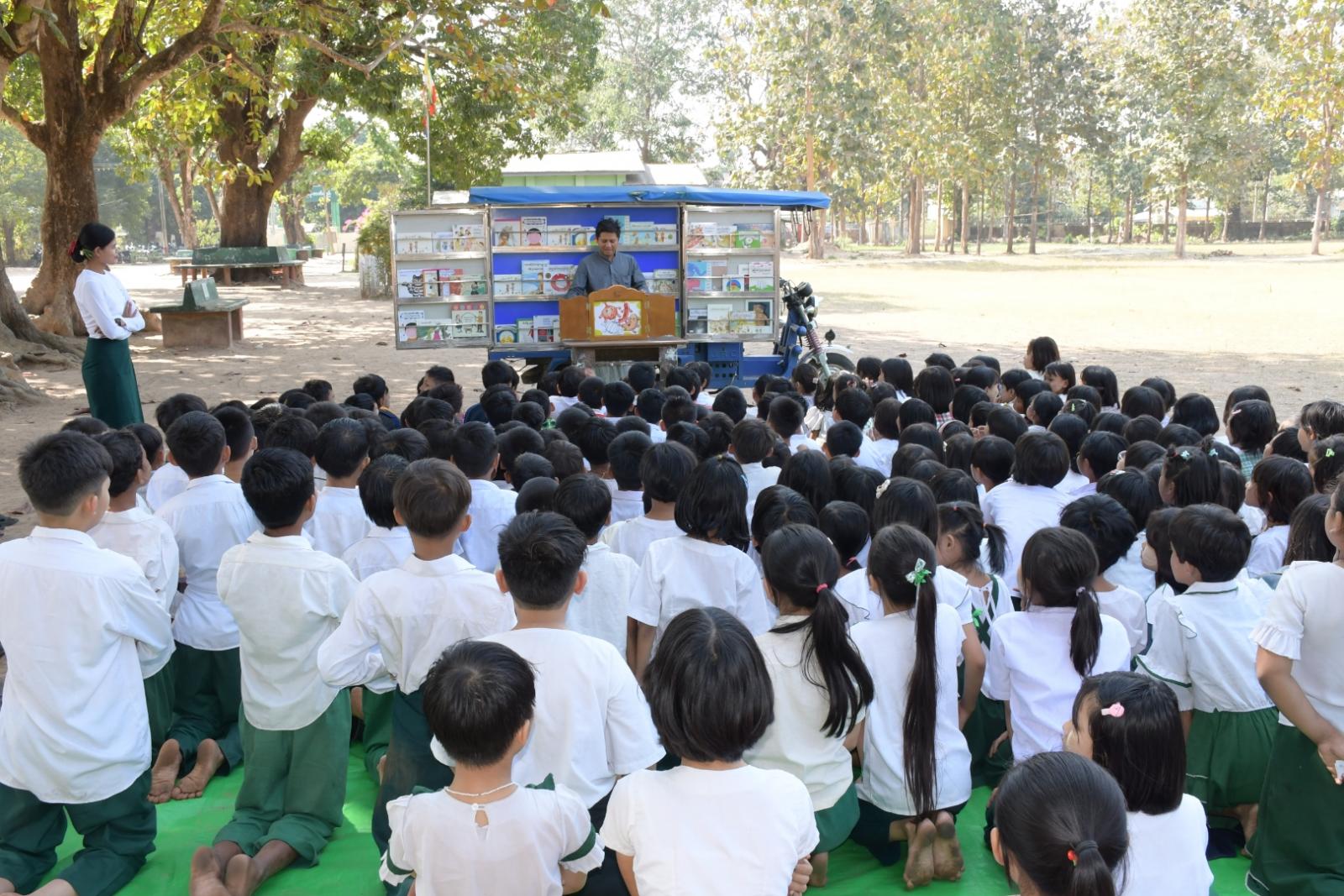 ထို့နောက်ကလေးငယ်များအား စာဖတ်သည့် အလေ့အကျင့်ရရှိစေရန် စာအုပ်စာစောင်များ ငှားရမ်းဆောင်ရွက်ခဲ့ရာ မူလတန်းအဆင့် ကျောင်းသား၊ ကျောင်းသူများက စိတ်ပါဝင်စားစွာ ငှားရမ်းဖတ်ရှုကြကြောင်းနှင့် ခင်းကျင်းပြသထားသော အသိပညာပေး နံရံကပ်စာစောင်များကို ကြည့်ရှုလေ့လာကြကြောင်း သိရသည်။