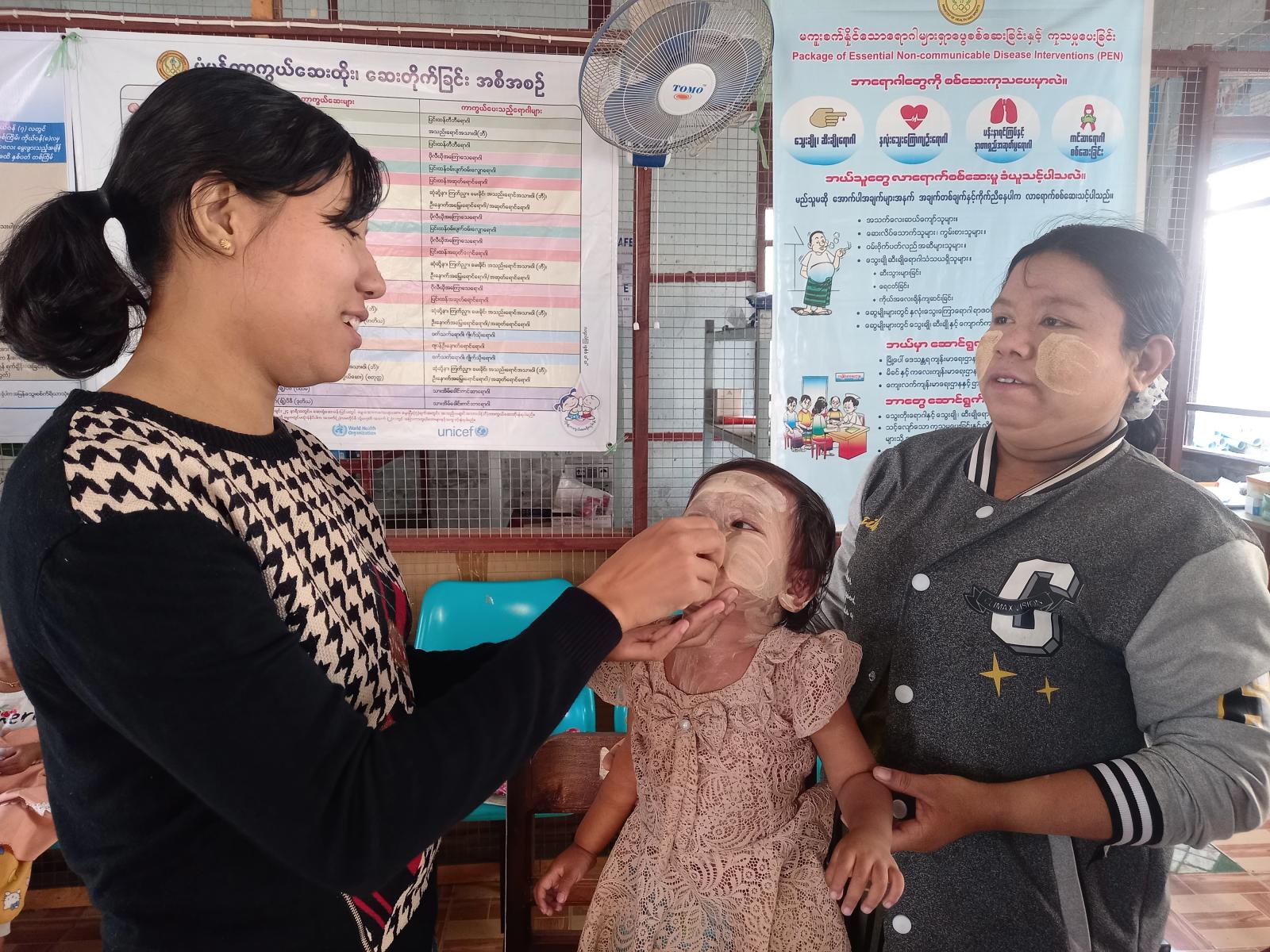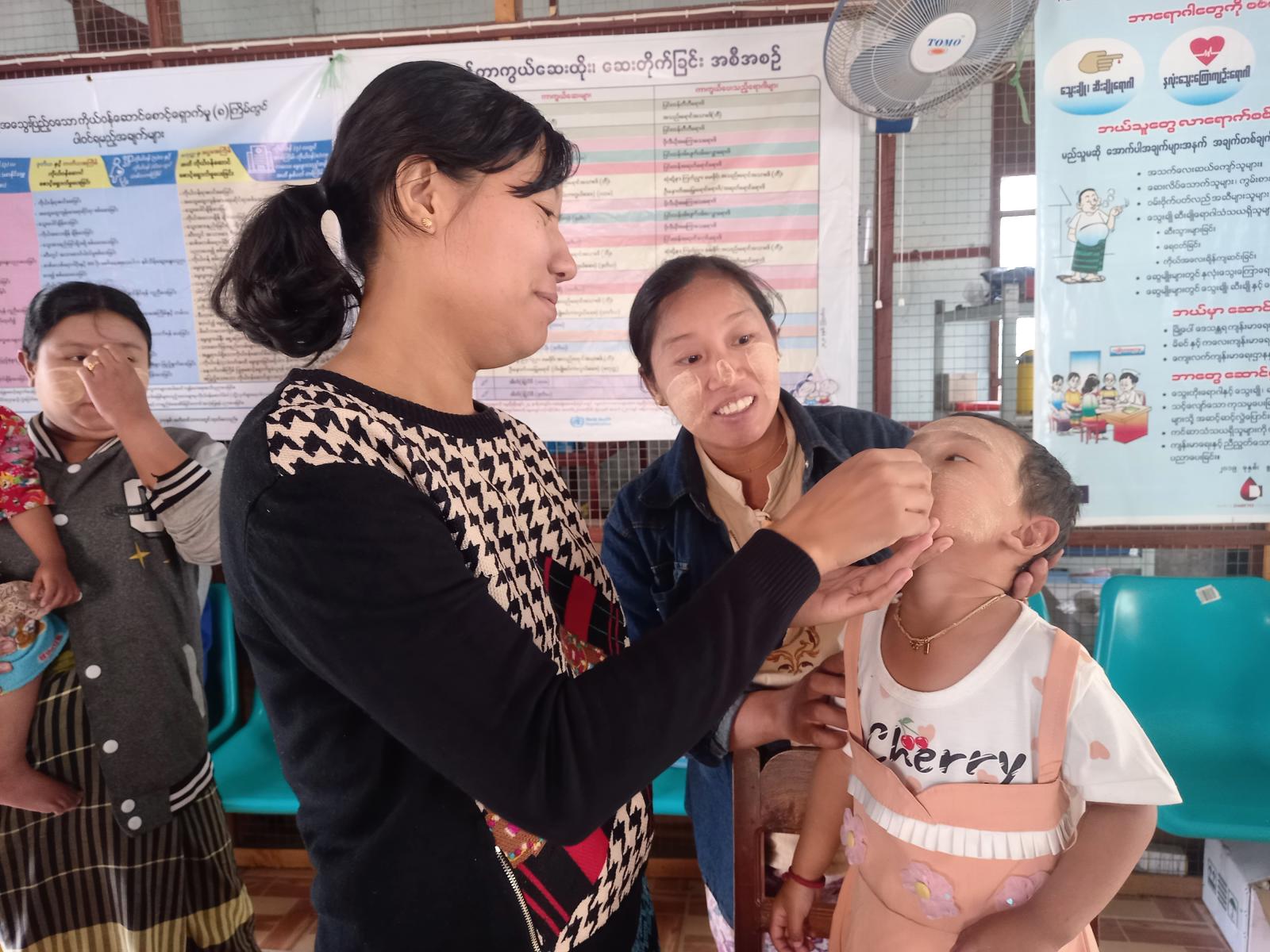 မကွေးတိုင်းဒေသကြီး၊ မင်းဘူးခရိုင်၊ ငဖဲမြို့နယ် မိခင်နှင့်ကလေးကျန်းမာရေးဌာနရုံးတွင် အသက်ခြောက်လမှ ငါးနှစ်အောက်ကလေးငယ်များ ခန္ဓာကိုယ်ကြီးထွားဖွံ့ဖြိုးစေရန်၊ ကျန်းမာသန်စွမ်းပြီး ရောဂါကူးစက်မှုမှ ကြိုတင်ကာကွယ်နိုင်ရန်ရည်ရွယ်၍ ဗီတာမင်အေနှင့်သန်ချဆေးများ တိုက်ကျွေးခြင်းကို ယနေ့နံနက် ၉ နာရီအချိန်က ဆောင်ရွက်ခဲ့သည်။