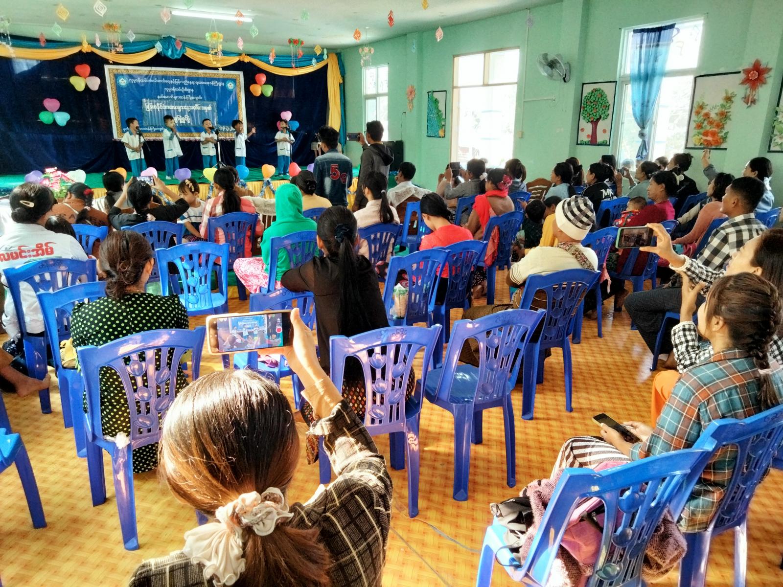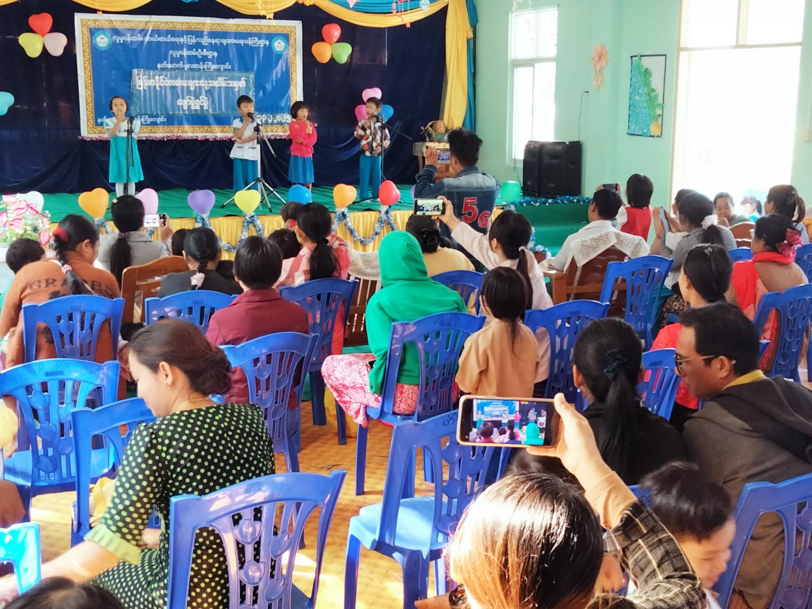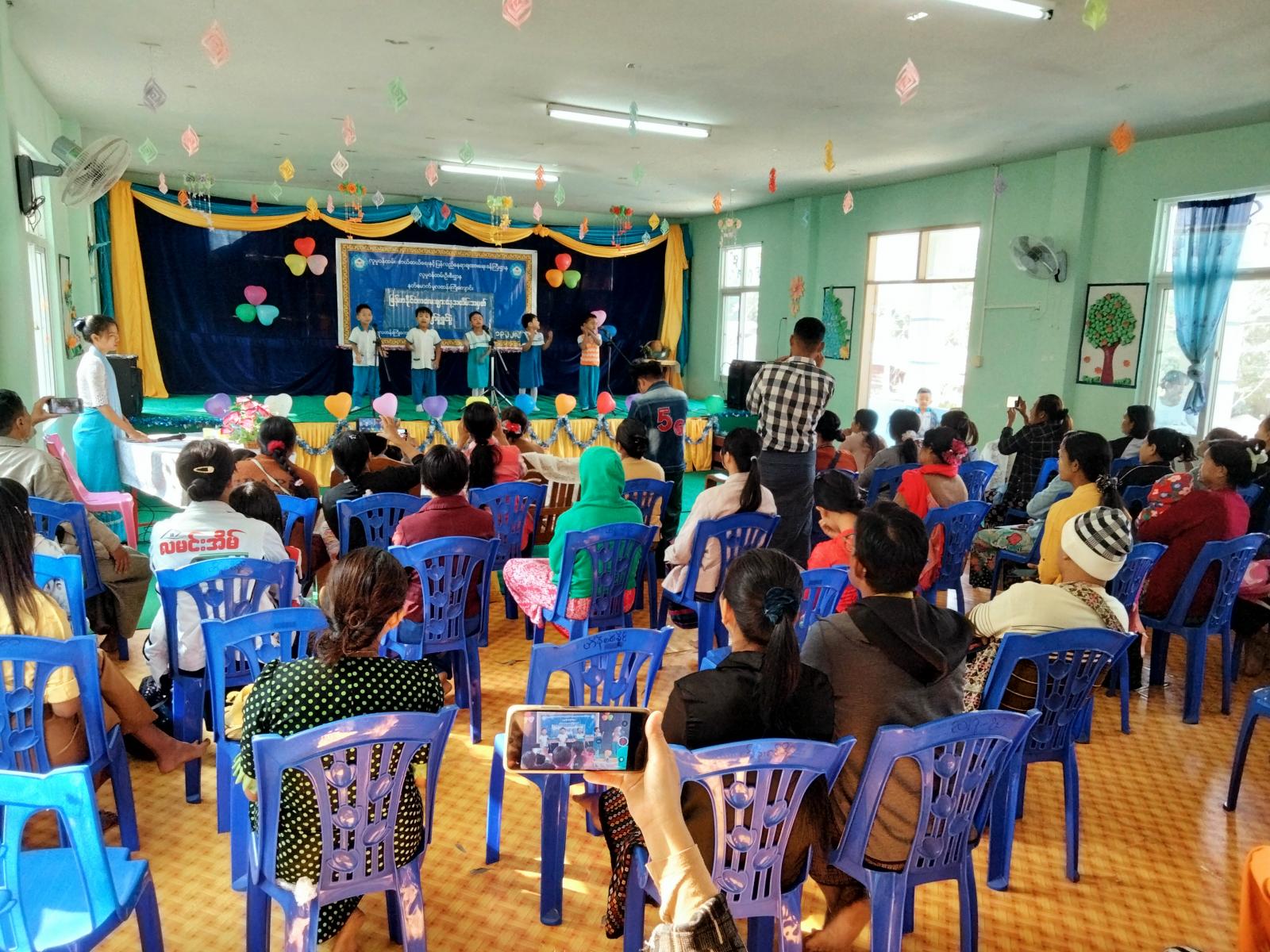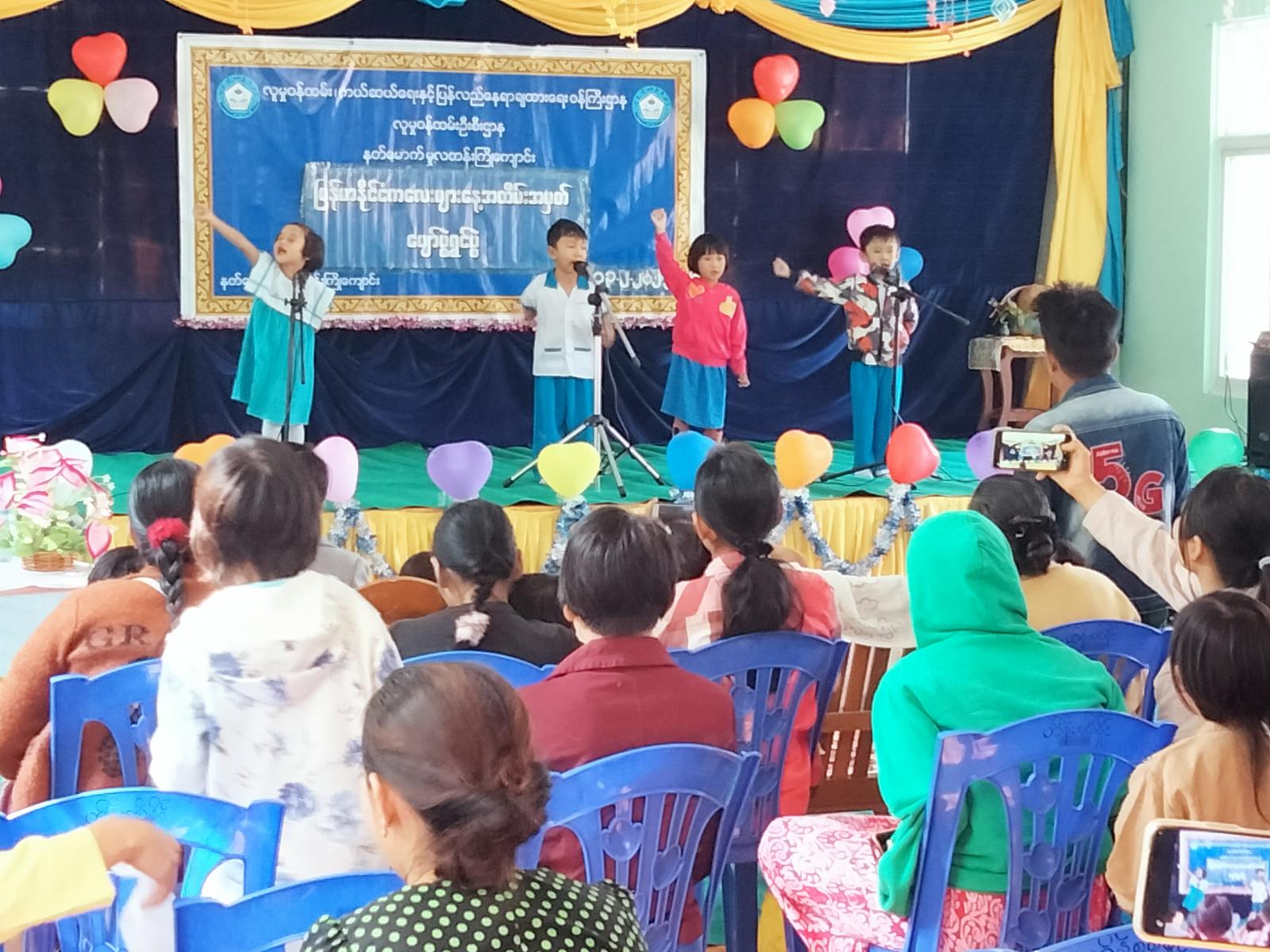 အဆိုပါ ပျော်ပွဲရွှင်ပွဲအား မြို့နယ်လူမှုဝန်ထမ်းဦးစီးဌာန ဦးစီးအရာရှိက ဦးဆောင်ကြီးကြပ်ပြီး မူလတန်းကြိုကျောင်းရှိ ကျောင်းသား/သူလေးများအား ကာယ၊ ဉာဏစွမ်းရည်ပြိုင်ပွဲများ ကျင်းပပြုလုပ်ခဲ့ရာ ကျောင်းသား/သူများ၏ မိဘပြည်သူများမှ ကလေးငယ်များအား မုန့်များဝေငှားပေးခဲ့သည်။