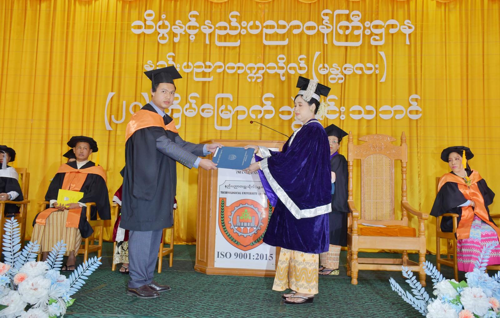 အဆိုပါ နည်းပညာတက္ကသိုလ်(မန္တလေး)ဘွဲ့နှင်းသဘင်အခမ်းအနားတွင် မဟာအင်ဂျင်နီယာ ၂၆ ဦး၊ ဗိသုကာအင်ဂျင်နီယာဘွဲ့ ၂၃ ဦး၊ မြို့ပြအင်ဂျင်နီယာ ၅၉ ဦး၊ သုတနည်းပညာအင်ဂျင်နီယာ ၂၄ ဦး၊ စက်မှုအင်ဂျင်နီယာ ၃၉ ဦး၊ မက္ကာထရောနစ်အင်ဂျင်နီယာ ၂၀ ဦး၊ အီလက်ထရာနစ် ၃၈ ဦး၊ လျှပ်စစ်စွမ်းအား ၄၃ ဦး၊ ရေနံတူးဖော်ရေးအင်ဂျင်နီယာဘွဲ့ ၁ ဦးနှင့် အဝေးရောက်ဘွဲ့ယူသူ ၆၆ ဦးတိုအား ပါမောက္ခချုပ် ဒေါက်တာစုယဉ်ဝင်းက ဘွဲ့လက်မှတ်များ ပေးအပ်ပြီး ဘွဲ့နှင်းသဘင်မိန့်ခွန်း ပြောကြားကြောင်း သိရသည်။