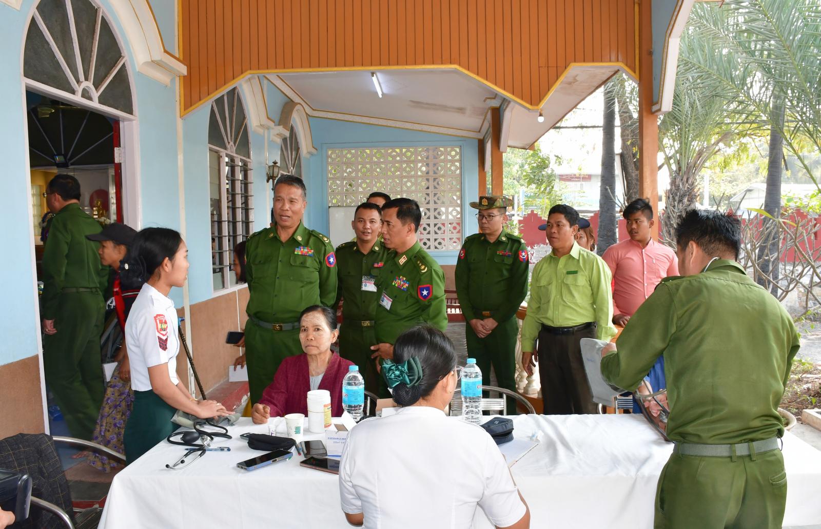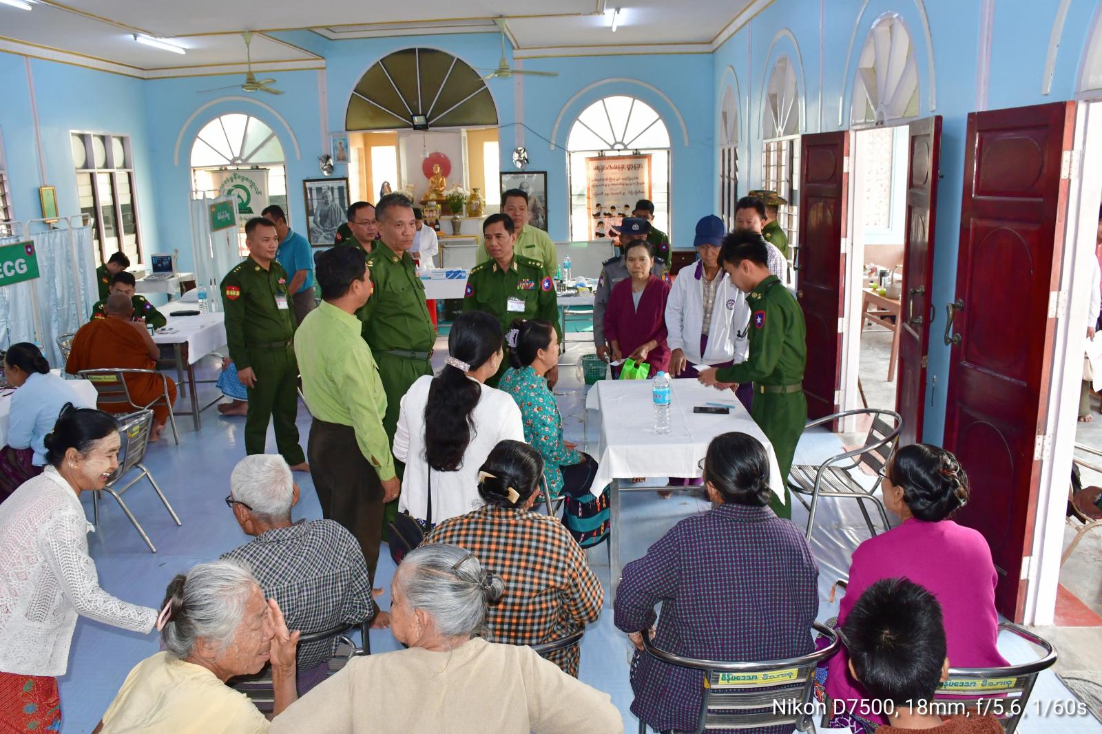 မန္တလေးတိုင်းဒေသကြီး၊ အောင်မြေသာစံခရိုင်၊ ပုသိမ်ကြီးမြို့နယ်၊ မြို့မရပ်ကွက်၊ ဗဟိုမြို့မကျောင်းတိုက်ဝန်းအတွင်းရှိ ဓမ္မပါလသာသနာ့ဗိမာန်တွင် ယနေ့နံနက် ၈နာရီခွဲကစတင်၍ အလယ်ပိုင်းတိုင်းစစ်ဌာနချုပ်၊ နယ်လှည့်ဆေးကုသရေးအဖွဲ့မှ ဒုတိယဗိုလ်မှူးကြီး ကျော်ကျော်ဝင်း ဦးစီး၍ အထွေထွေရောဂါကုပါရဂူကြီး (၇)ဦး၊ သွားအထူးကုပါရဂူကြီး (၁)ဦး၊ သူနာပြုအရာရှိ (၁)ဦး၊ အမျိုးသမီးသူနာပြု (၃)ဦး၊ အကူ(၂)ဦး၊ ပေါင်း(၁၄)ဦးတို့မှ သံဃာတော်များနှင့်ရပ်ကွက်အတွင်းရှိ ပြည်သူများအား ဆေးကုသမှုဆောင်ရွက်ပေးခဲ့ကြသည်။