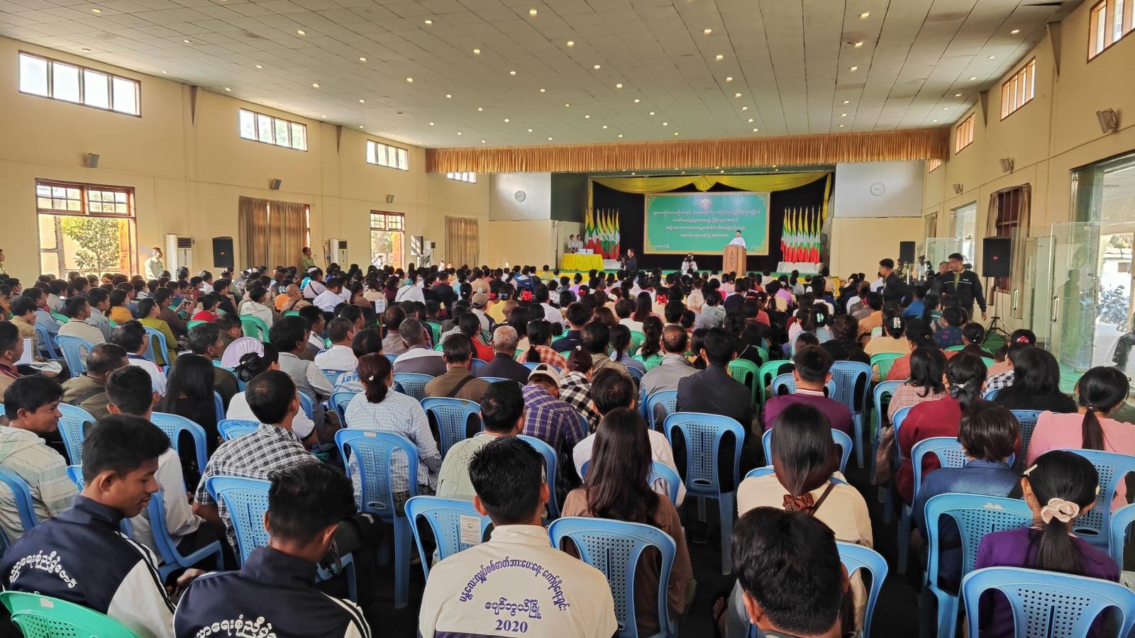 ဆက်လက်၍ ရမည်းသင်းမြို့ ဝါတိုးအရှေ့ရပ်ရှိ သီလဝခန်းမတွင် ကျင်းပပြုလုပ်သည့် ဒေသအသီးသီးမှ အကြမ်းဖက်မှုဖြစ်စဉ်များကြောင့်ယာယီနေရပ်စွန့်ခွာနေရသည့် ပြည်သူများအတွက် အမျိုးသားသဘာဝဘေးအန္တရာယ်ဆိုင်ရာ စီမံခန့်ခွဲမှုရန်ပုံငွေမှ ချီးမြှင့်ပေးအပ်ပွဲ အခမ်းအနားသို့တက်ရောက်ကာ တိုင်းဒေသကြီးဝန်ကြီးချုပ်က အဖွင့်အမှာစကားပြောကြားခဲ့ပြီး တိုင်းဒေသကြီးဝန်ကြီးချုပ်မှ ယာယီနေရပ်စွန့်ခွာ၍ ရမည်းသင်းမြို့နယ်တွင်နေထိုင်သည့် ပြည်သူ ၃၇၀ ဦးအား တစ်ဦးလျှင် ၂၀,၀၀၀ ကျပ်နှုန်းဖြင့် (၇,၄၀၀,၀၀၀)ကျပ်နှင့် ပျော်ဘွယ်မြို့နယ်တွင် နေထိုင်သည့် ပြည်သူ(၁၀၁၉)ဦးအား တစ်ဦးလျှင် ၂၀,၀၀၀ က ကျပ်နှုန်းဖြင့် (၂၀,၃၈၀,၀၀၀)ကျပ် စုစုပေါင်း ချီးမြှင့်ငွေ (၂၇,၇၈၀,၀၀၀)ကျပ်ထောက်ပံ့ပေးအပ်ခဲ့ရာ ရမည်းသင်း/ ပျော်ဘွယ်မြို့နယ်တို့မှ ယာယီနေရပ်စွန့်ခွာပြည်သူများကိုယ်စား ယာယီနေရပ်စွန့်ခွာသူတစ်ဦးက လက်ခံရယူခဲ့ပြီး ရှမ်းပြည်နယ်မြောက်ပိုင်း နမ္မတူမြို့မှ စွန့်ခွာလာသူတစ်ဦးက ကျေးဇူးတင်စကား ပြန်လည်ပြောကြားခဲ့သည်။ တိုင်းဒေသကြီးဝန်ကြီးချုပ်သည် အခမ်းအနား တက်ရောက်လာကြသူများအား ရင်းရင်းနှီးနှီးတွေ့ဆုံနှုတ်ဆက်ခဲ့သည်။