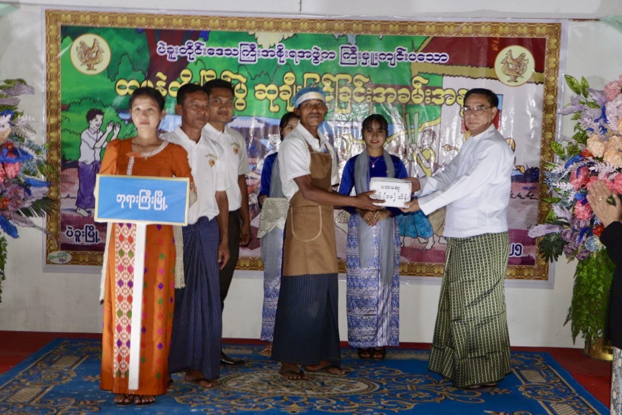 ယင်းနောက် ဆုပေးပွဲအခမ်းအနားအား ဆက်လက်ကျင်းပရာ နှစ်သိမ့်ဆုရရှိသည့် ပြိုင်ပွဲဝင် အသင်းအဖွဲ့ (၃၆) ဖွဲ့အား ဆုငွေကျပ် (၁) သိန်းစီနှင့် ဂုဏ်ပြုအထူးဆုရရှိသော ပြိုင်ပွဲဝင် (၇) သင်းအား ဆုငွေကျပ် (၂) သိန်းစီတို့အား တိုင်းဒေသကြီးအစိုးရအဖွဲ့ ဝန်ကြီးများနှင့် ပဲခူးတက္ကသိုလ် ပါမောက္ခချုပ်နှင့် တိုင်းဒေသကြီးအဆင့် ဌာနဆိုင်ရာများတို့ကလည်းကောင်း၊ တတိယဆုရရှိသည် လုံခြုံရေးနှင့်နယ်စပ်ရေးရာဝန်ကြီးဌာန (ခ) အသင်းနှင့် ဥဿာမြို့သစ် (၉) ရပ်ကွက်အသင်းတို့အတွက် ဂုဏ်ပြုဆုငွေကျပ် (၅) သိန်းစီအား တိုင်းဒေသကြီးလုံခြုံရေးနှင့် နယ်စပ်ရေးရာဝန်ကြီး ဗိုလ်မှူးကြီး အောင်သောင်းထိုက်ကလည်းကောင်း၊ ဒုတိယဆုရရှိသည့် စီးပွားရေးရာဝန်ကြီးဌာန (က) အသင်းနှင့် ဥဿာမြို့သစ် (၁) ရပ်ကွက်အသင်းတို့အတွက် ဂုဏ်ပြုဆုငွေ (၇) သိန်းကျပ်စီအား တိုင်းဒေသကြီးတရားလွှတ်တော် တရားသူကြီးချုပ် ဒေါ်လွင်လွင်အေးကျော်ကလည်းကောင်း၊ ပထမဆုရရှိသည့် သယံဇာတရေးရာဝန်ကြီးဌာန (ဂ) အသင်းနှင့် ဘုရားကြီးမြို့အသင်းတို့အတွက် ဂုဏ်ပြုဆုငွေကျပ် (၁၀) သိန်းစီနှင့် ဒိုင်အဖွဲ့များအတွက် ဂုဏ်ပြုငွေကျပ် (၃) သိန်းတို့အား ပဲခူးတိုင်းဒေသကြီးဝန်ကြီးချုပ် ဦးမျိုးဆွေဝင်းကလည်းကောင်း ဆုများအသီးသီး ပေးအပ်ချီးမြှင့်ခဲ့ကြသည်။