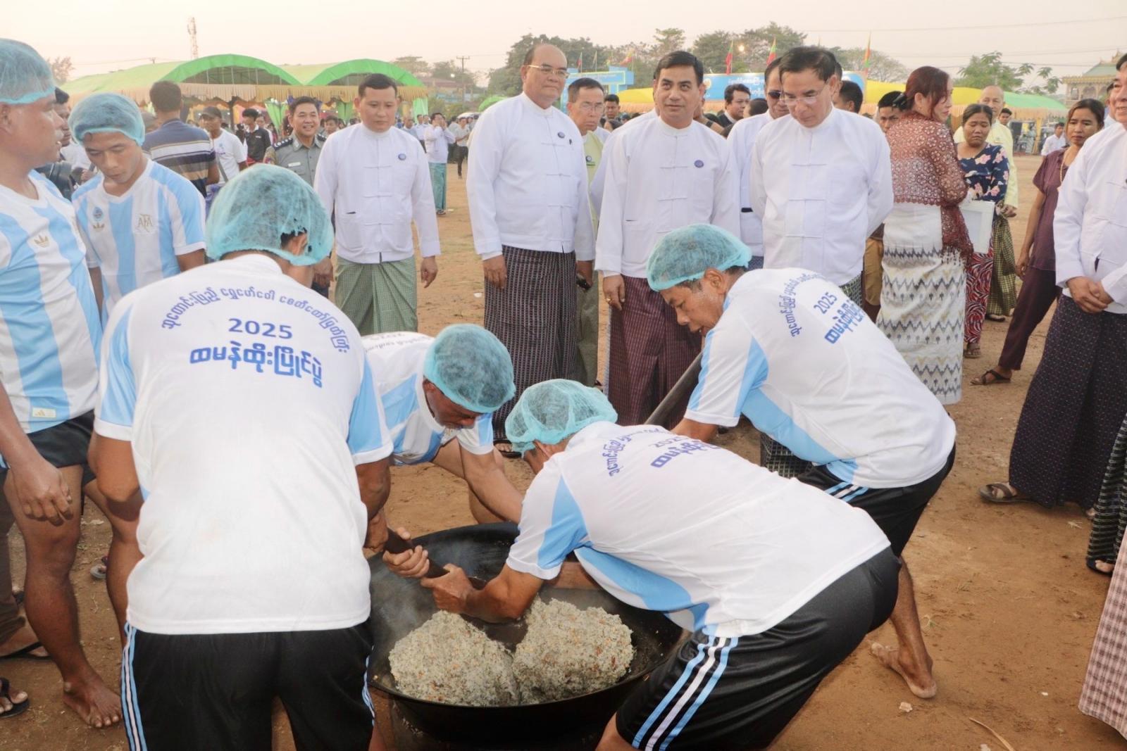 ထို့နောက် တိုင်းဒေသကြီးသယံဇာတရေးရာဝန်ကြီးက ပြိုင်ပွဲဝင်အသင်းများအား စတင်ယှဉ်ပြိုင်နိုင်ရန် မင်္ဂလာမောင်း (၃) ချက်တီး၍ ပြိုင်ပွဲအား ဖွင့်လှစ်ပေးခဲ့သည်။ ၎င်းနောက် တိုင်းဒေသကြီးဝန်ကြီးချုပ်နှင့်အဖွဲ့သည် ပြိုင်ပွဲဝင်များ၏ စည်းလုံးမှုစုပေါင်းအားဖြင့် ထမင်းနဲထိုးယှဉ်ပြိုင်နေမှုအား လိုက်လံကြည့်ရှု အားပေးခဲ့ကြသည်။