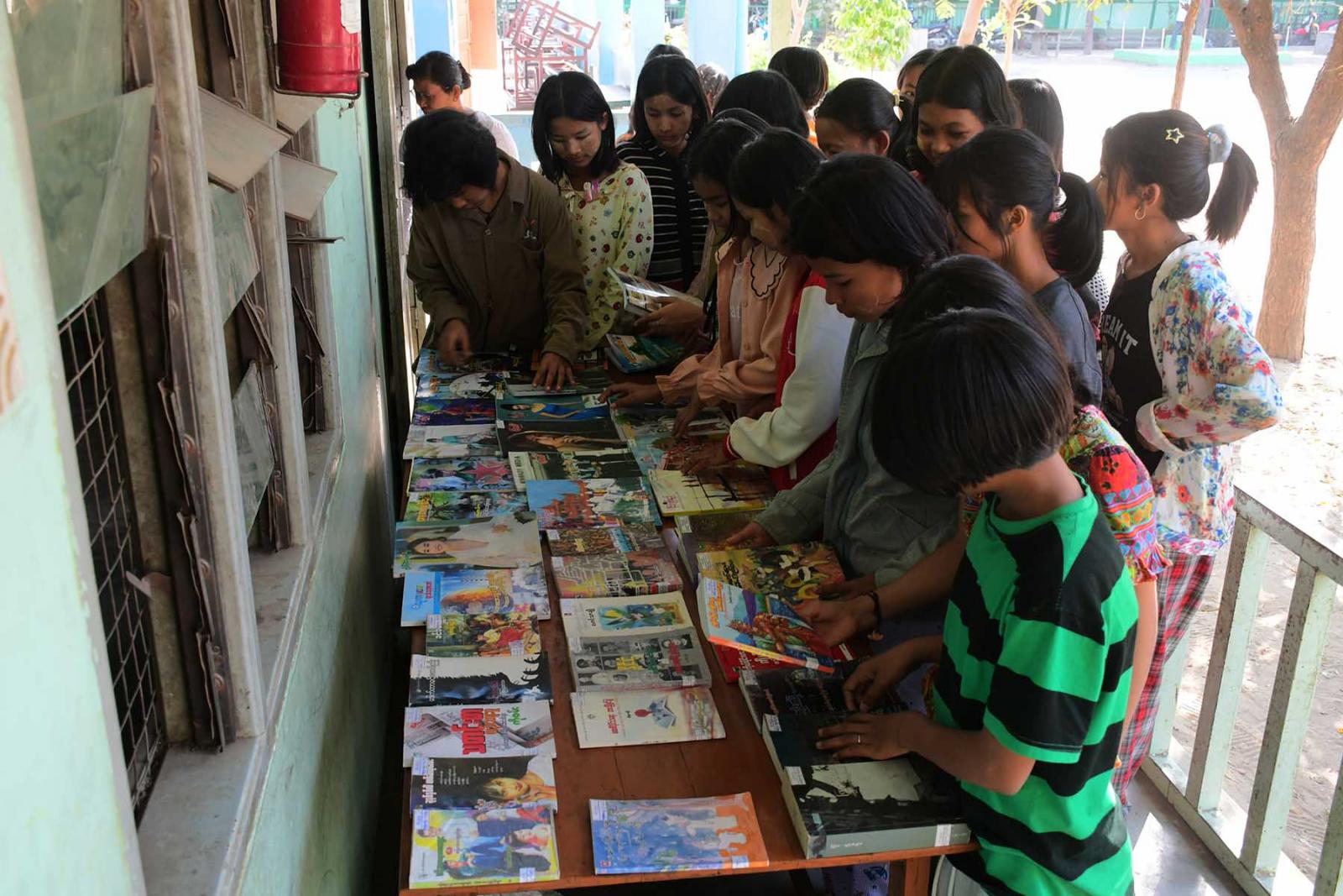 ဟောပြောပွဲအပြီးတွင် သုတ/ ရသစာအုပ်များ ခင်းကျင်းပြသထားရာ ကျောင်းသား/ ကျောင်းသူများမှ စိတ်ပါဝင်စားစွာ လေ့လာကြည့်ရှုခဲ့ကြကြောင်း သိရသည်။