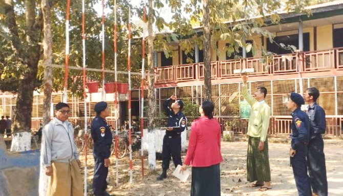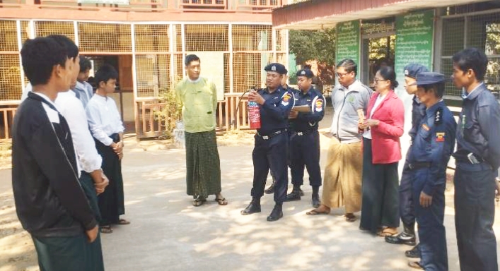 ထိုသို့ ဆောင်ရွက်ရာတွင် မြို့နယ်စီမံအုပ်ချုပ်ရေးအဖွဲ့ဥက္ကဋ္ဌ ဦးမျိုးတင့်ထူး၊ မြို့နယ်မီးသတ်ဦးစီးမှူး ဦးဝင်းနိုင်ဦးနှင့် မီးသတ်တပ်ဖွဲ့ဝင်များ၊ မြို့နယ်ပညာရေးဌာနတို့ပူးပေါင်း၍ အ.ထ.ကမင်းလှ(မြို့ပြင်)စာစစ်ဌာနနှင့် အ.ထ.က(စစ်ကွင်း)စာစစ်ဌာနတို့၌ မီးဘေးအန္တရာယ်မဖြစ်ပွားစေရန်အတွက် ပတ်ဝန်းကျင် သန့်ရှင်းရေးဆောင်ရွက်ထားမှု၊ ရေကန်များတွင်ရေအပြည့်သိုလှောင်ထားရှိမှု၊ မီးသတ်ဆေးဘူးများအသင့်ထားရှိမှု၊ လျှပ်စစ်မီးများသုံးစွဲရာတွင် ကောင်းမွန်သော ဝိုင်ယာကြိုးများတပ်ဆင်အသုံးပြုထားမှုအခြေအနေများ၊ မီးသတ်ကားအလွယ်တကူဝင်ထွက်သွားလာနိုင်ရန် ဆောင်ရွက်ထားမှုများတို့ကို ကြည့်ရှုစစ်ဆေးခဲ့ပြီး ကျောင်းအုပ်ကြီးများနှင့်ဆရာဆရာမများကို လိုအပ်သည်များ ဆွေးနွေးပြောကြားခဲ့ကြောင်း သိရသည်။