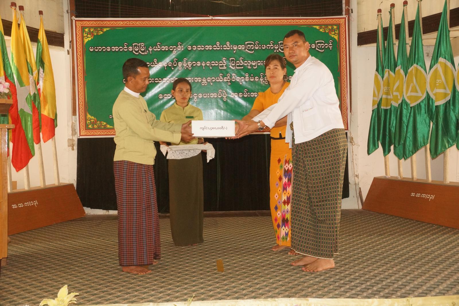 အခမ်းအနားတွင် မြို့နယ်စီမံအုပ်ချုပ်ရေးအဖွဲ့ဥက္ကဋ္ဌ ဦးမောင်မောင်မှ အဖွင့်အမှာစကား ပြောကြားခြင်း၊ မြို့နယ်စီမံအုပ်ချုပ်ရေးအဖွဲ့ဥက္ကဋ္ဌနှင့်အဖွဲ့ဝင်များမှ မဟာအောင်မြေမြို့နယ်၊ ရပ်ကွက်များအတွင်းရှိ ယာယီနေရပ်စွန့်ခွာနေရသူ တစ်ဦးလျှင်၂၀၀၀ဝိ/-ကျပ်နှုန်းဖြင့်(၂၅၂၁)ဦး အား စုစုပေါင်း ထောက်ပံ့ငွေ (၅၀၀၄၂၀၀ဝိ/-)ကျပ် ထောက်ပံ့ပေးအပ်ခဲ့ကြောင်း သိရသည်။