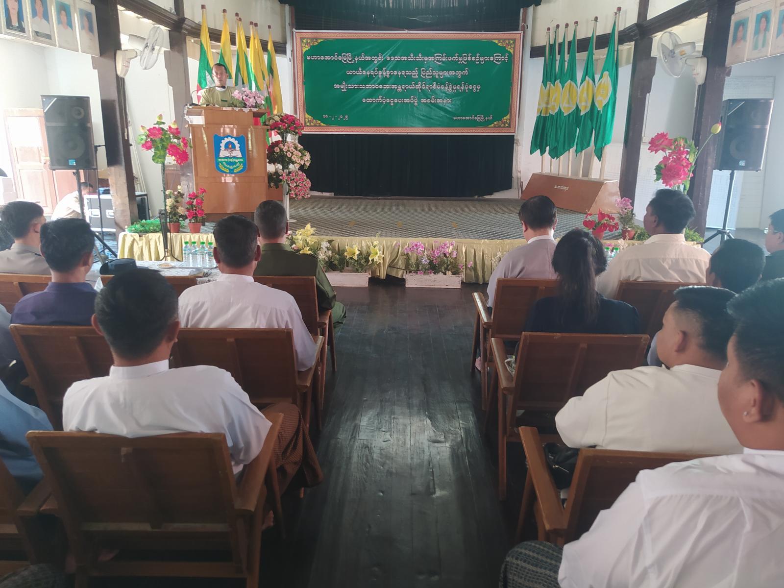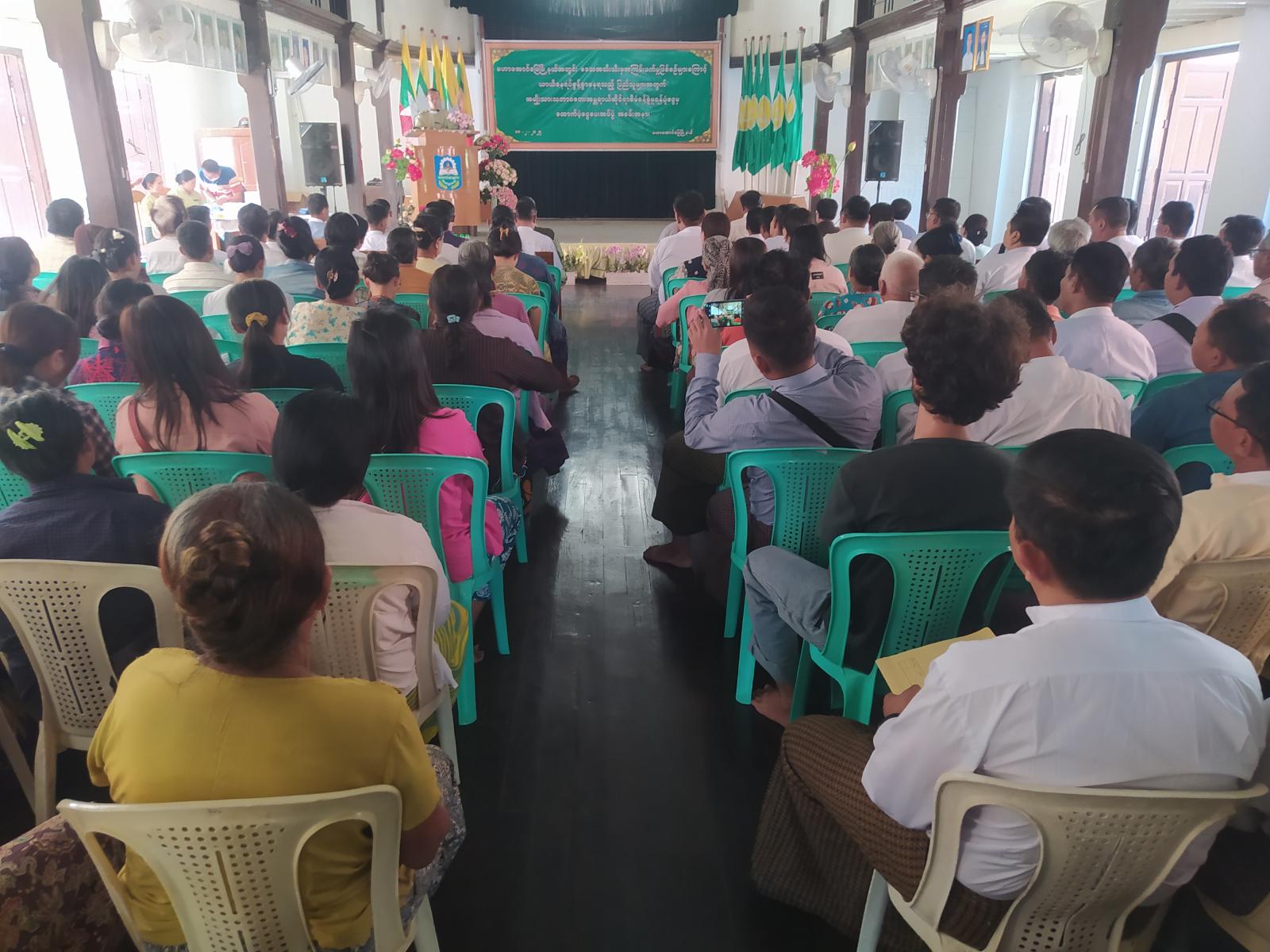 မန္တလေးတိုင်းဒေသကြီး၊ မဟာအောင်မြေမြို့နယ်အတွင်း ဒေသအသီးသီးမှ အကြမ်းဖက်မှုဖြစ်စဉ်များကြောင့် ယာယီနေရပ်စွန့်ခွာနေရသည့် ပြည်သူများအတွက် အမျိုးသားသဘာဝဘေးအန္တရာယ်ဆိုင်ရာ စီမံခန့်ခွဲမှုရန်ပုံငွေမှ ထောက်ပံပေးအပ်ပွဲအခမ်းအနားကို ယမန်နေ့ မွန်းလွဲပိုင်းက အမှတ်(၁၃) အ.ထ.ကကျောင်း၌ ကျင်းပပြုလုပ်ခဲ့ရာအခမ်းအနားသို့ မြို့နယ်စီမံအုပ်ချုပ်ရေးအဖွဲ့ဥက္ကဋ္ဌ ဦးမောင်မောင်၊ အဖွဲ့ဝင် (၁)ဗိုလ်မှူး ဆွေလွင်အောင်၊ အဖွဲ့ဝင်(၂) ဦးထွန်းထွန်းဝင်း၊ မြို့နယ်ရဲမှူး စည်သူကျော်နှင့် ဒုမြို့နယ်ပညာရေးမှူး ဦးလွမ်းဇေ၊ ဌာနဆိုင်ရာတာဝန်ရှိသူများ၊ ရပ်ကွက်အုပ်ချုပ်ရေးမှူးများ၊ ယာယီနေရပ်စွန့်ခွာနေရသူများ စုစုပေါင်းအင်အား (၂ဝ၀)ဦးခန့် တက်ရောက်ခဲ့သည်။