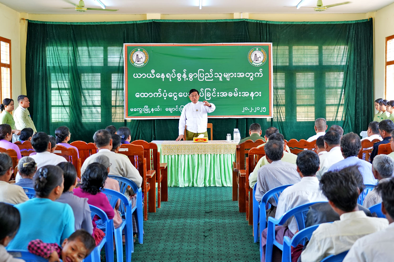 မကွေးတိုင်းဒေသကြီးအတွင်း ဒေသအသီးသီးမှ အကြမ်းဖက်ဖြစ်စဉ်များကြောင့် ယာယီနေရပ်စွန့်ခွာနေရသည့် ပြည်သူများအတွက် ထောက်ပံ့ငွေပေးအပ်ပွဲအခမ်းအနားကို ယမန်နေ့နံနက် ၁၀ နာရီက မကွေးမြို့နယ် မယ်လှတောင်ကျေးရွာအုပ်စု အလက (ချောင်းဖြူ)ကျောင်းခန်းမ၌ကျင်းပရာ တိုင်းဒေသကြီးဝန်ကြီးချုပ် ဦးတင့်လွင်နှင့် အဖွဲ့ဝင်ဝန်ကြီးများ၊ မကွေးတပ်နယ်မှ တာဝန်ရှိသူများ၊ ခရိုင်/မြို့နယ် စီမံအုပ်ချုပ်ရေးအဖွဲ့များ၊ ယာယီနေရပ်စွန့်ခွာနေရသည့် ပြည်သူများ တက်ရာက်ကြသည်။