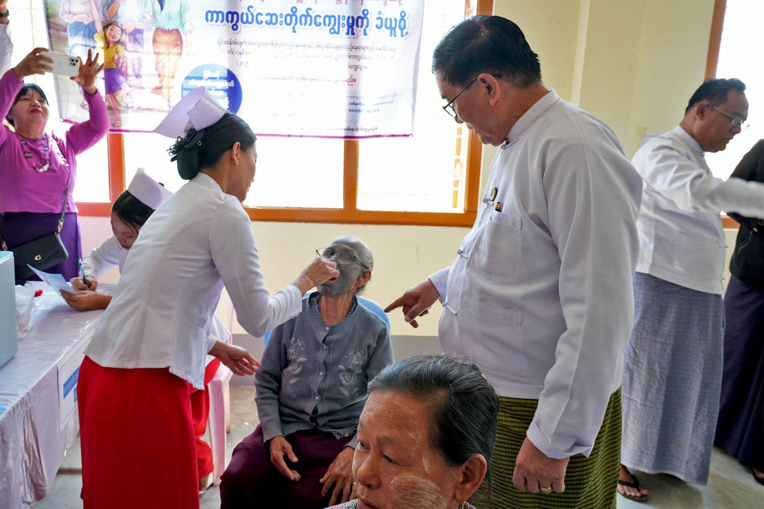 ထို့နောက် တိုင်းဒေသကြီးဝန်ကြီးချုပ် ဦးတင့်လွင်နှင့် တာဝန်ရှိသူများက အကြမ်းဖက်ဖြစ်စဉ်များကြောင့် ယာယီနေရပ်စွန့်ခွာနေရသည့် ပြည်သူများအတွက် ထောက်ပံ့ငွေများပေးအပ်ရာ ချင်းပြည်နယ် ကျင်ဒွေးဒေသမှ ယာယီနေရပ်စွန့်ခွာပြည်သူများက လက်ခံရယူခဲ့ကြကြောင်းနှင့် အဆိုပါကျောင်းခန်းမအတွင်း ယာယီနေရပ်စွန့်ခွာ ပြည်သူများအား (OCV)ကာကွယ်ဆေး တိုက်ကျွေးမှု လွှမ်းခြုံမှုရရှိစေရေး ကျန်းမာရေးဝန်ထမ်းများက ပြင်းထန်ဝမ်းပျက်ဝမ်းလျှောရောဂါ တုံ့ပြန်ကာကွယ်ဆေး(OCV) တိုက်ကျွေးဆောင်ရွက်နေမှုအား ကြည့်ရှုအားပေးသည်။