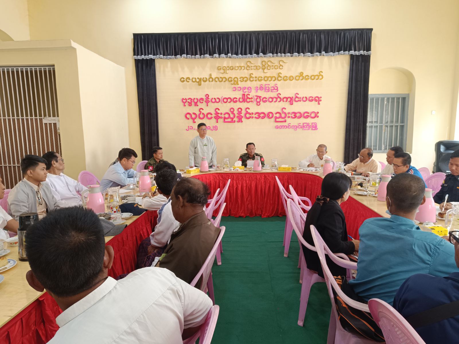 အဆိုပါ လုပ်ငန်းညှိနှိုင်း အစည်းအဝေးသို့ အမှတ် (၇)စစ်အခြေခံလေ့ကျင့်ရေးတပ် တပ်နယ်မှူး ဗိုလ်မှူးကြီး ကျော်သန်းဆွေ၊ မြို့နယ်စီမံအုပ်ချုပ်ရေးအဖွဲ့ဥက္ကဋ္ဌ ဦးကျော်ဇင်ဦးနှင့် အဖွဲ့ဝင်များ၊ ဌာနဆိုင်ရာအကြီးအကဲများ၊ ဇေယျမင်္ဂလာ ရွှေအင်းတောင်စေတီတော်မြတ်ကြီး၏ ဘဏ္ဍာတော်ထိန်းဂေါပကအဖွဲ့ဥက္ကဋ္ဌနှင့် အဖွဲ့ဝင်များ၊ ရပ်ကွက်အုပ်ချုပ်ရေးမှူးများနှင့် အလှူရှင်များ တက်ရောက်ခဲ့သည်။