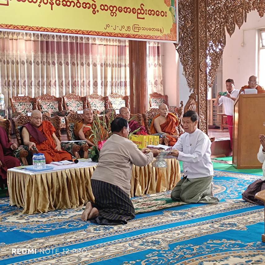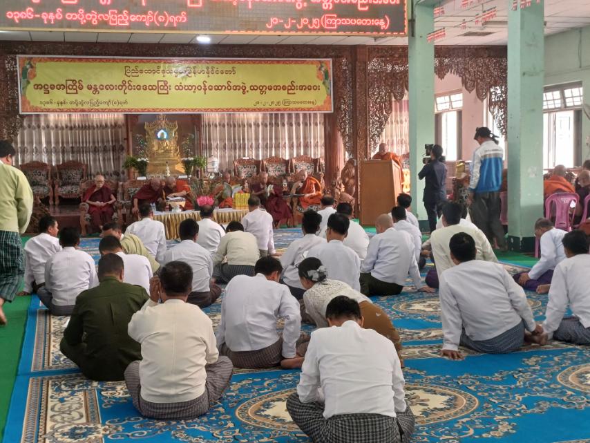 မဟာအောင်မြေမြို့နယ်၊ စိန်ပန်းရပ်ကွက်၊ မစိုးရိမ်တိုက်သစ်၊ ဓမ္မမဟိဒ္ဓိလေးထပ်ကျောင်းဆောင်၊ တတိယထပ်တွင်၊ အဋ္ဌမအကြိမ်၊ မန္တလေးတိုင်းဒေသကြီး သံဃာ့ဝန်ဆောင်အဖွဲ့၊ သတ္တမအစည်းအဝေးကို ယမန်နေ့နံနက်ပိုင်းက ကျင်းပပြုလုပ်ခဲ့ရာ အခမ်းအနားသို့ မန္တလေးတိုင်းဒေသကြီး သံဃာ့နာယကအဖွဲ့ ဩဝါဒဆရာတော် ဘဒ္ဒန္တနန္ဒောဘာသ (ရန်အောင်မင်းကျောင်း၊ ရမည်းသင်းမြို့) တိုင်းဒေကြီးသံဃနာယကအဖွဲ့ဥက္ကဋ္ဌ ဘဒ္ဒန္တတိက္ခိန္ဒြိ ယာဘိဝံသ (မစိုးရိမ်တိုက်သစ်၊ ဓမ္မဂါရဝကျောင်း)၊ တိုင်းဒေကြီးသံဃနာယကအဖွဲ့ ဒုဥက္ကဋ္ဌဘဒ္ဒန္တ ပညေသိက၊ (စက်ဝန်မင်းကျောင်းတိုက်၊ အောင်မြေသာစံမြို့နယ်)တိုင်းဒေကြီး သံဃနာယကအဖွဲ့ အကျိုးတော်ဆောင် ဘဒ္ဒန္တဝါသဝသိရီ (သာသနာ့ဇောတိကာရုံကျောင်း၊ ဘုရားကြီးတိုက်၊ ချမ်းမြသာစည်မြို့နယ်) တိုင်းဒေကြီးသံဃနာယကအဖွဲ့ တွဲဖက်အကျိုးတော်ဆောင်ဘဒ္ဒန္တကဝိန္ဒ၊ (ရတနာမာရ်အောင် ကျောင်းတိုက်၊ ပြင်ဦးလွင်မြို့နယ်) ဘဒ္ဒန္တဓမ္မာဓိပတျာလင်္ကာရ (အလည်ရွှေကျောင်းကြီး၊ မိုးကောင်းတိုက်၊ ချမ်းအေးသာစံမြို့နယ်) ဘဒ္ဒန္တဃောသိတ (မင်းကုန်းကျောင်းတိုက်၊ မြစ်သားမြို့နယ်)ဘဒ္ဒန္တဓမ္မာဝုဓ၊(မြတ်ရွှေဂူကျောင်းတိုက်၊ကျောက်ပန်းတောင်းမြို့နယ်)၊ ဘဒ္ဒန္တဇဝန၊ ပထမကျော်ဓမ္မာစရိယတိုက်သစ်၊ မိတ္ထီလာမြို့နယ်) ဘဒ္ဒန္တဝိနယ (ပရိယတ္တိ မာမကျောင်းတိုက်၊ ပျော်ဘွယ်မြို့နယ်) ဘဒ္ဒန္တဣန္ဒာစာရ (မြို့ရှေ့ကျောင်းတိုက်၊ တောင်သာမြို့နယ်) တိုင်းဒေသကြီးသံဃနာယကဆရာတော်ကြီး(၁၂)ပါးနှင့် သံဃာ့ဝန်ဆောင် ဆရာတော်(၁၀၈)ပါး မန္တလေးတိုင်းဒေသကြီးအစိုးရအဖွဲ့ဝန်ကြီးချုပ် ဦးမျိုးအောင်၊ သယံဇာတရေးရာဝန်ကြီး ဦးရွှေဇင်၊ လမ်းပန်းဆက်သွယ်ရေးဝန်ကြီး ဦးအောင်ဇော်ဦး၊ တိုင်းဒေသကြီးဥပဒေချုပ် ဦးမြင့်အောင်၊ တိုင်းဒေသကြီးအထွေထွေအုပ်ချုပ်ရေးမှူး ဦးဝေဇင်ထွန်း၊ တိုင်းဒေသကြီးသာသနာရေးမှူးဦးဖြိုးဇော်ဇော်၊ မဟာအောင်မြေခရိုင်ရဲတပ်ဖွဲ့မှူး ဒုရဲမှူးကြီး ဝဏ္ဏအောင်၊ မဟာအောင်မြေမြို့နယ်၊ မြို့နယ်စီမံအုပ်ချုပ်ရေးအဖွဲ့ဥက္ကဋ္ဌ ဦးမောင်မောင်၊ အဖွဲ့ဝင် ဗိုလ်မှူး ဆွေလွင်အောင်နှင့် ဖိတ်ကြားထားရှိသောဧည့်သည်တော်များ စုစုပေါင်း (၄၅)ဦးခန့်တက်ရောက်သည်။