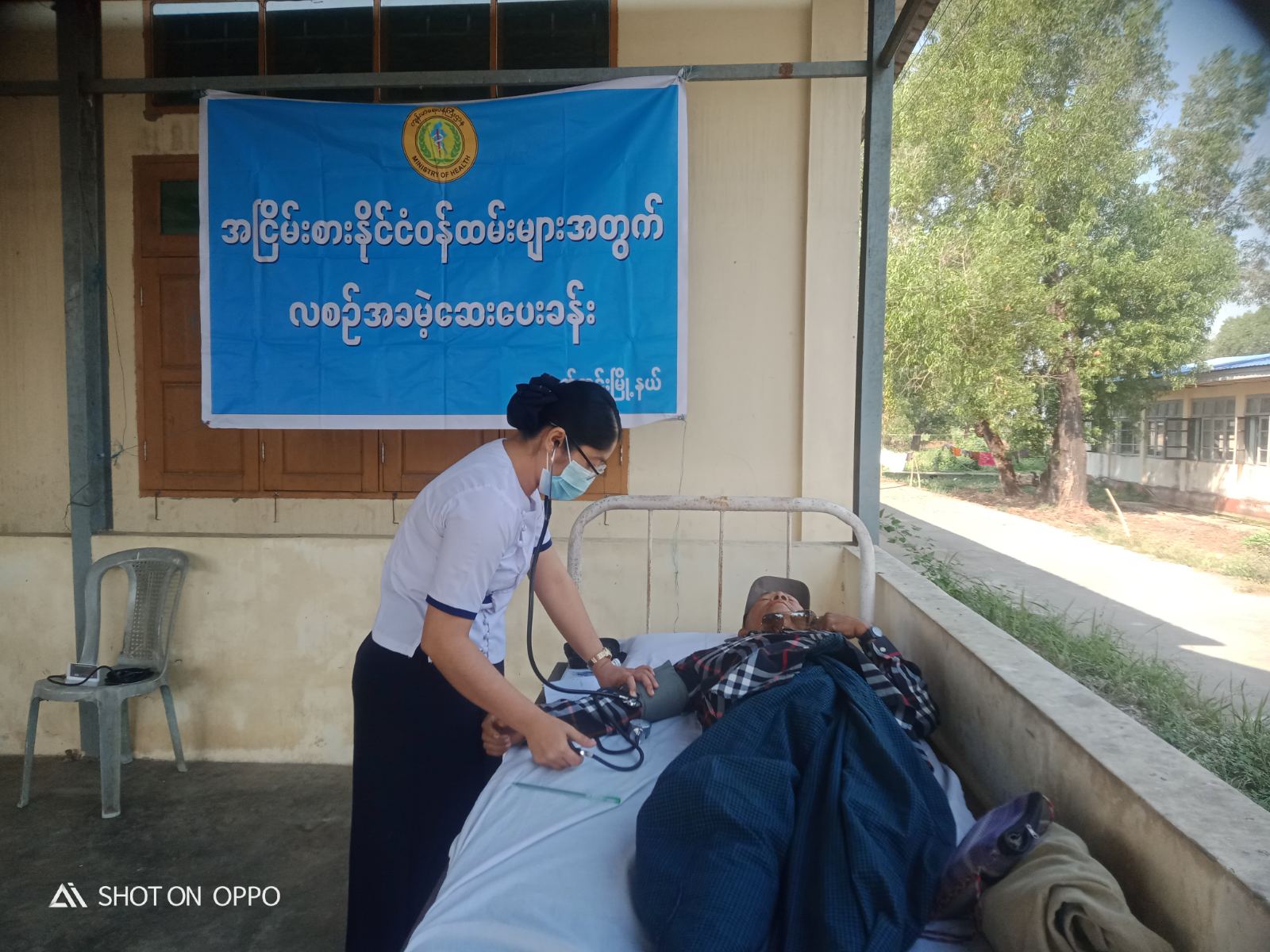 ပဲခူးတိုင်းဒေသကြီး၊ တောင်ငူခရိုင်၊ အုတ်တွင်းမြို့နယ်အတွင်းရှိ အငြိမ်းစားနိုင်ငံ့ဝန်ထမ်းများအား မြို့နယ်ကုသရေးဦးစီးဌာနမှူး၏ စီစဥ်မှုဖြင့် ယမန်နေ့နံနက်ပိုင်းက မြို့နယ်ပြည်သူ့ဆေးရုံကြီး၌ ကျန်းမာရေးစောင့်ရှောက်မှု ပြုလုပ်ပေးလျက်ရှိသည်။
