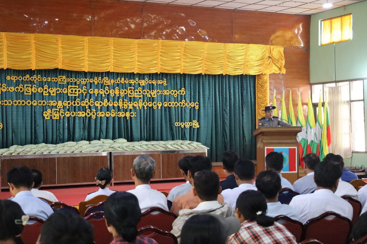အခမ်းအနားတွင် လပွတ္တာခရိုင်စီမံအုပ်ချုပ်ရေးအဖွဲ့ ဥက္ကဋ္ဌကိုယ်စား ခရိုင်စီမံအုပ်ချုပ်ရေးအဖွဲ့ အတွင်းရေးမှူး ဒုတိယရဲမှူးကြီးမျိုးမြင့်က နေရပ်စွန့်ခွာပြည်သူများအား အမှာစကားပြောကြားခြင်း၊ မြို့နယ်စီမံအုပ်ချုပ်ရေးအဖွဲ့ဥက္ကဋ္ဌ ဦးသူရက ယာယီနေရပ်စွန့်ခွာပြည်သူများအား ဆန်ရိက္ခာနှင့် ထောက်ပံ့ငွေပေးအပ်ခြင်းနှင့်ပတ်သက်၍ ရှင်းလင်းပြောကြားပြီး ခရိုင်စီမံအုပ်ချုပ်ရေးအဖွဲ့ အဖွဲ့ဝင် (၁) ဒုတိယဗိုလ်မှူးကြီး အောင်ဖုန်းဟန်နှင့် အဖွဲ့ဝင်များ၊ မြို့နယ်စီမံအုပ်ချုပ်ရေးအဖွဲ့ဥက္ကဋ္ဌ ဦးသူရနှင့်အဖွဲ့ဝင်များက ယာယီနေရပ်စွန့်ခွာပြည်သူ (၂၂၈) ဦးအား တစ်ဦးလျှင် ဆန် (၂) ပြည်နှုန်းဖြင့် စုစုပေါင်း ဆန် (၁၉) အိတ်၊ ယာယီနေရပ်စွန့်ခွာပြည်သူ (၃၄၉) ဦးအား တစ်ဦးလျှင် ငွေကျပ်နှစ်သောင်းနှုန်းဖြင့် စုစုပေါင်းငွေကျပ် (၆၉၈၀၀၀၀) ကျပ်အား လက်ဝယ်အရောက် ပေးအပ်ခဲ့ကြောင်း သိရသည်။