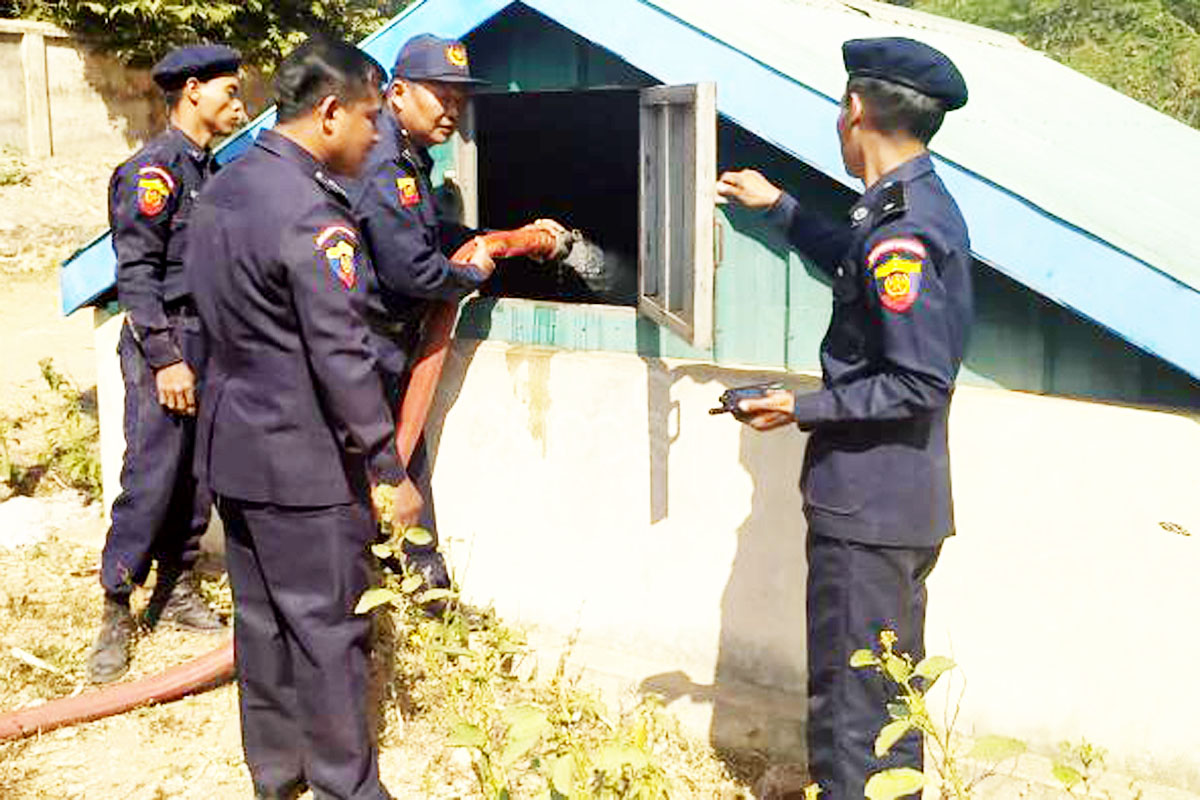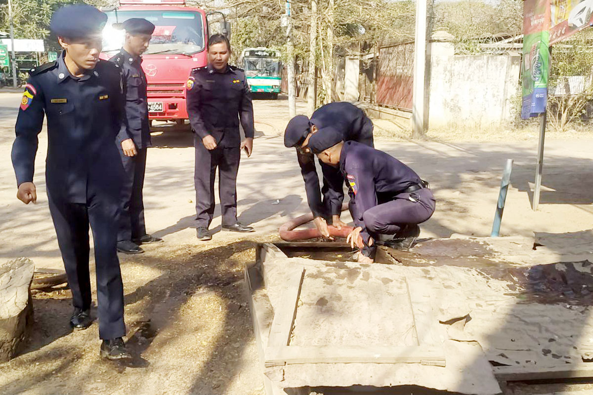 မြို့နယ်ဦးစီးမှူး ဦးသန်းမြင့်နှင့် သန္ဓေတပ်ဖွဲ့ဝင်များ၊ အရန်မီးသတ်တပ်ဖွဲ့ဝင်များသည် မြို့ပေါ်ရပ်ကွက် အသီးသီးရှိ မီးသတ်ရေလှောင်ကန်များတွင် ရေလုံလောက်မှု ရှိ/ မရှိ နှင့် အရေးပေါ်မီးသတ်ရေငုတ်များ အလွယ်တကူ ရေရယူသုံးစွဲနိုင်ခြင်း ရှိ/ မရှိတို့ကို လှည့်လည်စစ်ဆေးကြပြီး၊ ရေလုံလောက်မှုမရှိသည့် မီးသတ်ရေကန်များတွင် ရေဖြည့်တင်းခြင်းနှင့် အမိုးအကာများ အလွယ်တကူ ဖွင့်ပိတ်နိုင်စေရန်တို့ကို သက်ဆိုင်ရာ ရပ်ကွက်တာဝန်ရှိသူများနှင့်အတူ ဆောင်ရွက်ခဲ့ကြကြောင်း သိရသည်။