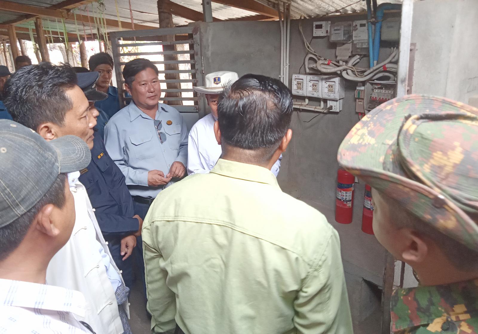 ယင်းနောက် မြို့နယ်စီမံအုပ်ချုပ်ရေးအဖွဲ့သည် မြို့နယ်စည်ပင်သာယာရေးအမှုဆောင်အရာရှိ၊ မီးသတ်ဦးစီးမှူးနှင့်လျှပ်စစ်မှူးတို့လိုက်ပါလျက် ဈေးအတွင်းလိုက်လံကြည့်ရှုစစ်ဆေးခဲ့ကြကြောင်း သိရသည်။