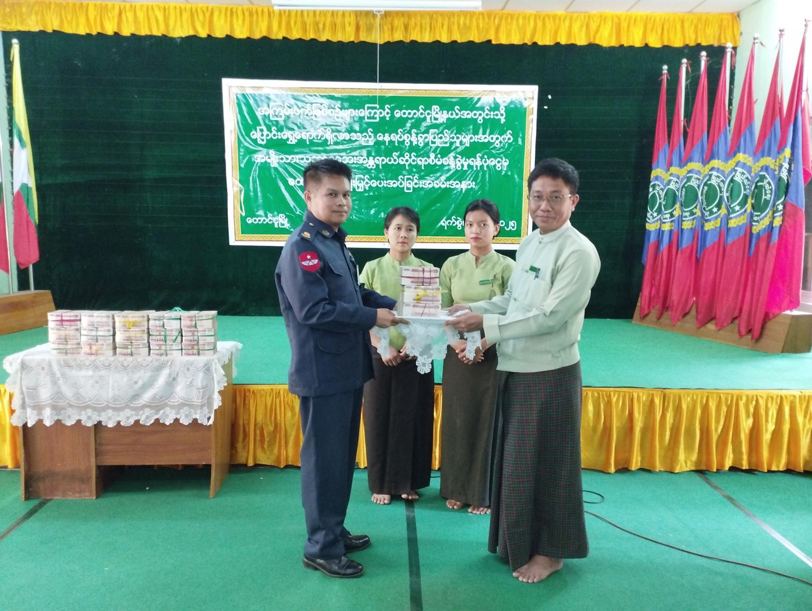ထိုသို့ပေးအပ်ရာတွင် ခရိုင်စီမံအုပ်ချုပ်ရေးအဖွဲ့ခေတ္တဥက္ကဋ္ဌ ဦးညီညီလွင်စိုးက အဖွင့်အမှာစကားပြောကြားပြီး မြို့နယ်စီမံအုပ်ချုပ်ရေးအဖွဲ့ဥက္ကဋ္ဌ ဦးဉာဏ်လင်းအောင်က ယာယီနေရပ်စွန့်ခွာပြည်သူများအတွက် အမျိုးသားသဘာဝဘေးအန္တရာယ်ဆိုင်ရာစီမံခန့်ခွဲမှု ရန်ပုံငွေမှ ထောက်ပံ့ငွေပေးအပ်ခြင်းနှင့်ပတ်သက်၍ ရှင်းလင်းပြောကြားသည်။ ထို့နောက်ခရိုင်စီမံအုပ်ချုပ်ရေးအဖွဲ့ ခေတ္တဥက္ကဋ္ဌ ဦးညီညီလွင်စိုးနှင့် တာဝန်ရှိသူများက သက်ဆိုင်ရာ ရပ်ကွက်၊ ကျေးရွာအုပ်ချုပ်ရေးမှူးများအား တောင်ငူမြို့နယ်အတွင်းသို့ ယာယီနေရပ်စွန့်ခွာပြည်သူ အိမ်ထောင်စု(၆၃၄၄)စု၊ လူဦးရေ(၃၁၉၄၃)ဦးအတွက် တစ်လစာတစ်ဦးလျှင် ကျပ်(၂၀၀၀၀)နှုန်းဖြင့် စုစုပေါင်းငွေကျပ်(၆၃၈၈၆၀၀၀၀) ပေးအပ်ခဲ့ကြောင်း သတင်းရရှိသည်။
